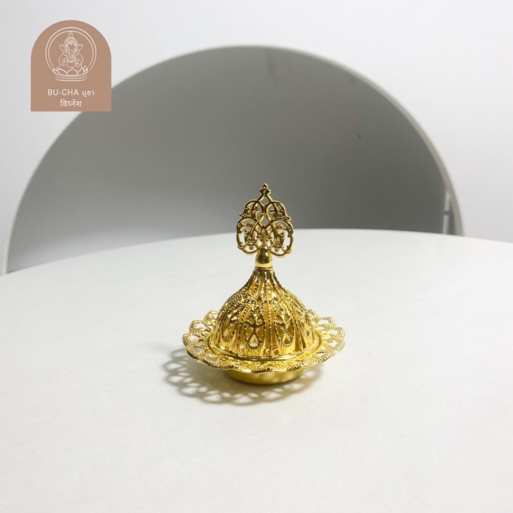 DT80-7 ที่ใส่กำยานแต่งลายฝาปิดสีทอง H4-1
