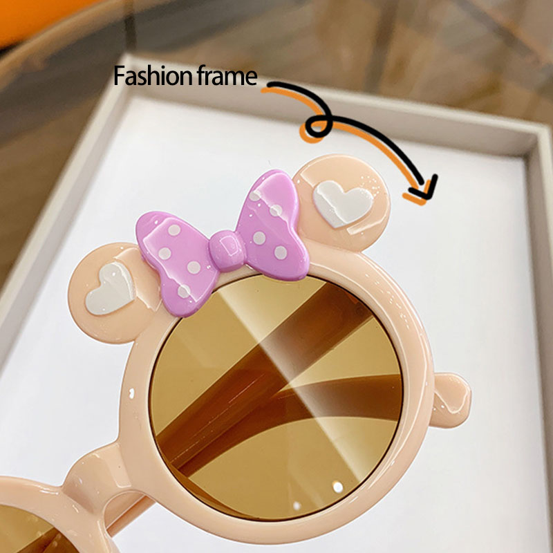แว่นตากันแดด กรอบทรงกลม ประดับโบว์ ป้องกันรังสียูวี เหมาะกับใส่กลางแจ้ง สําหรับเด็ก