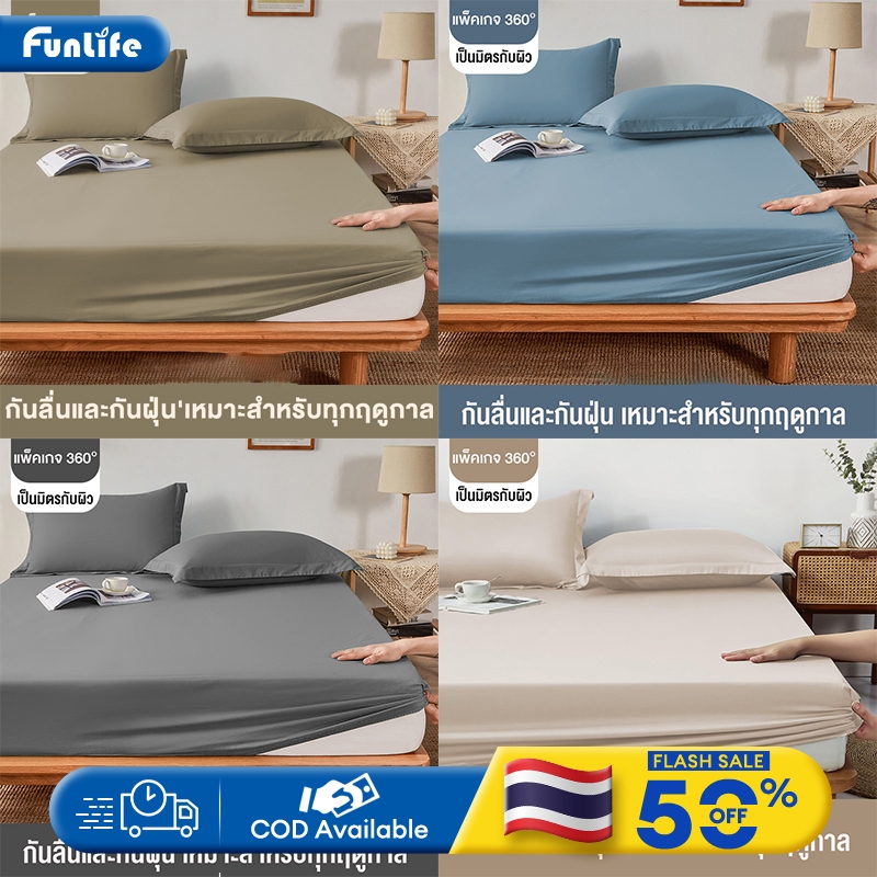 FLM ผ้าปูที่นอน ชุดผ้าปูที่นอน ผ้ารองกันเปื้อนที่นอน 3/3.5/5/6F กันไรฝุ่น แบบคลุมรัดมุม ฟรีปลอกหมอน