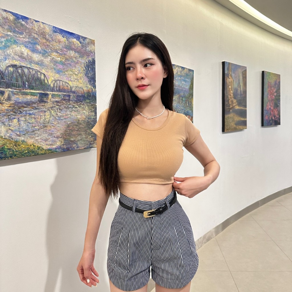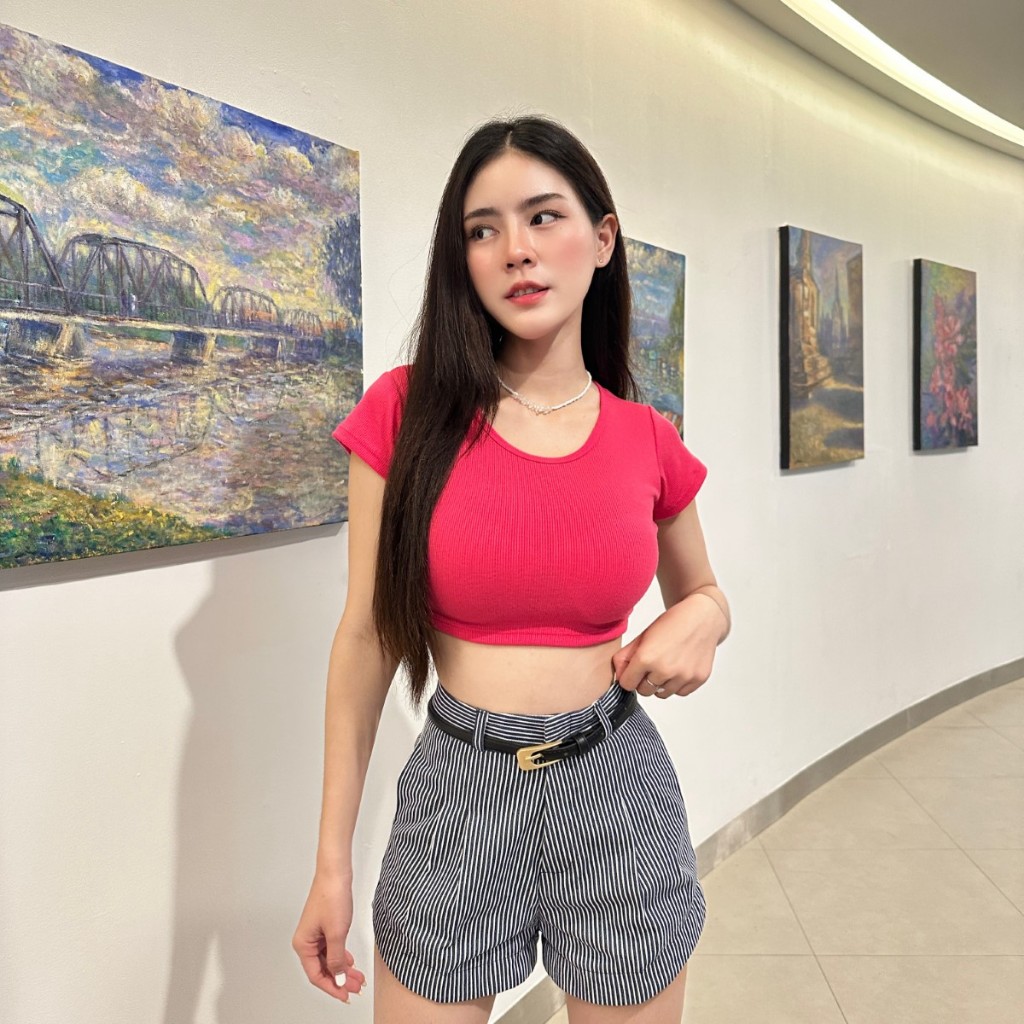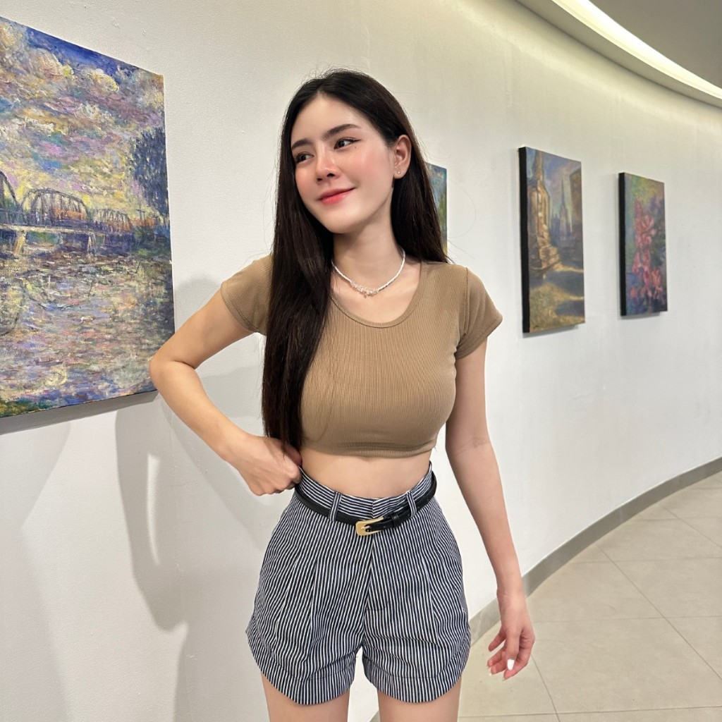 🌈SpinnyHouse🌈เสื้อครอปแขนสั้น ผ้าร่องทรงดี ยิดเยอะมากก 💖 เบสิคครอปแต่งแมตช์ง่ายมาก นางแบบใส่งานจริง รุ่น การะเกตุ