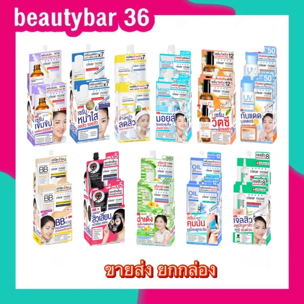 (ขายส่งยกล่อง) เคลียร์โนส Clear nose ครบสูตร เซรั่มบูสต์ผิว กันแดด เจลว่านหาง เซรั่มม่วงเคลียร์โนส เซรั่มฟ้าเคลียร์โนส