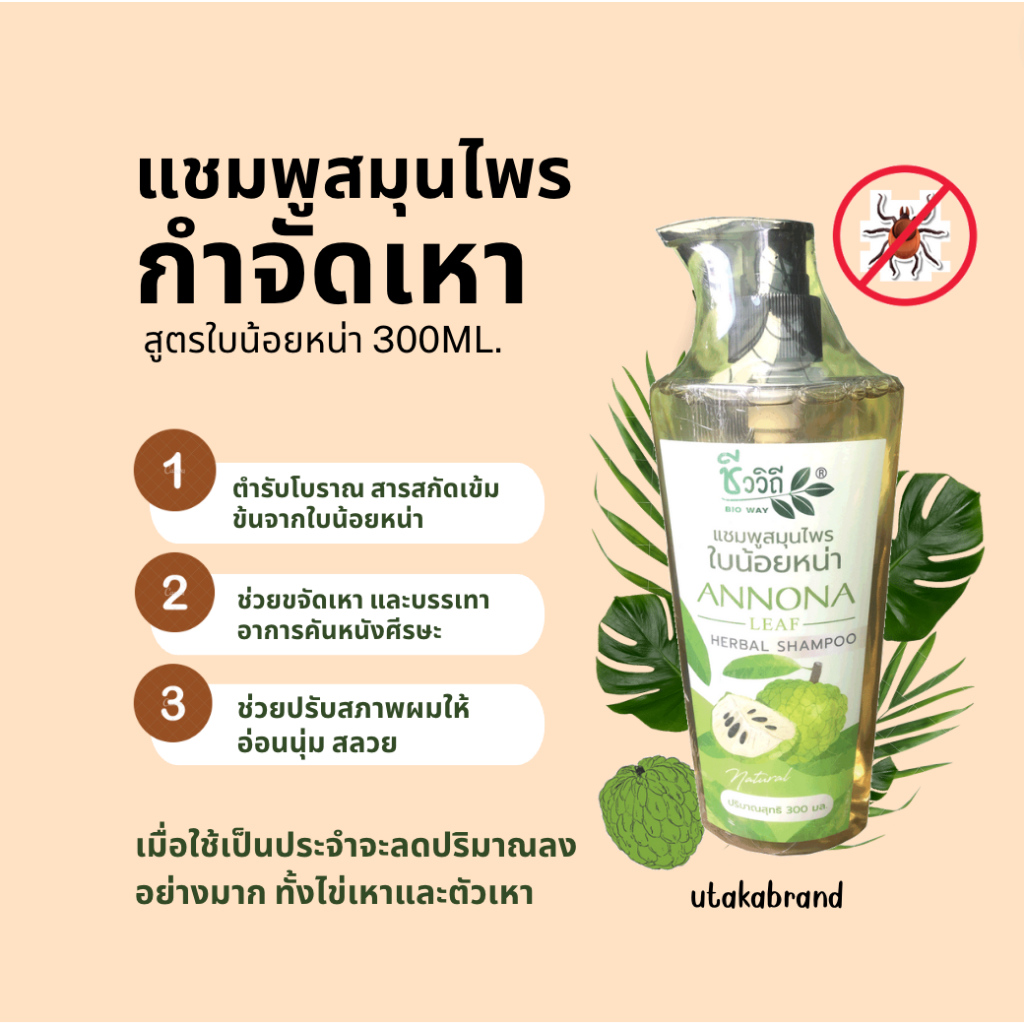 ชีววิถี แชมพูสมุนไพร กำจัดเหา สูตรใบน้อยหน่า ขนาด300ML.