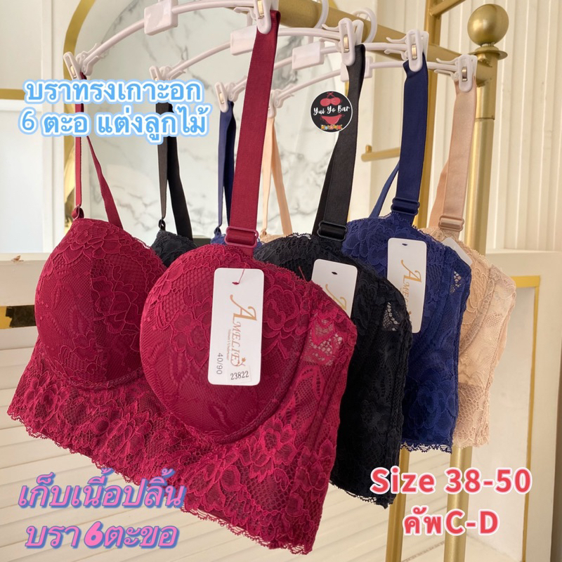 23822^บรา6 ตะขอแต่งลูกไม้ครึ่งเต้า(Sizr38-50)เก็บเนื้อปลิ้นด้านข้างได้ดีC-D