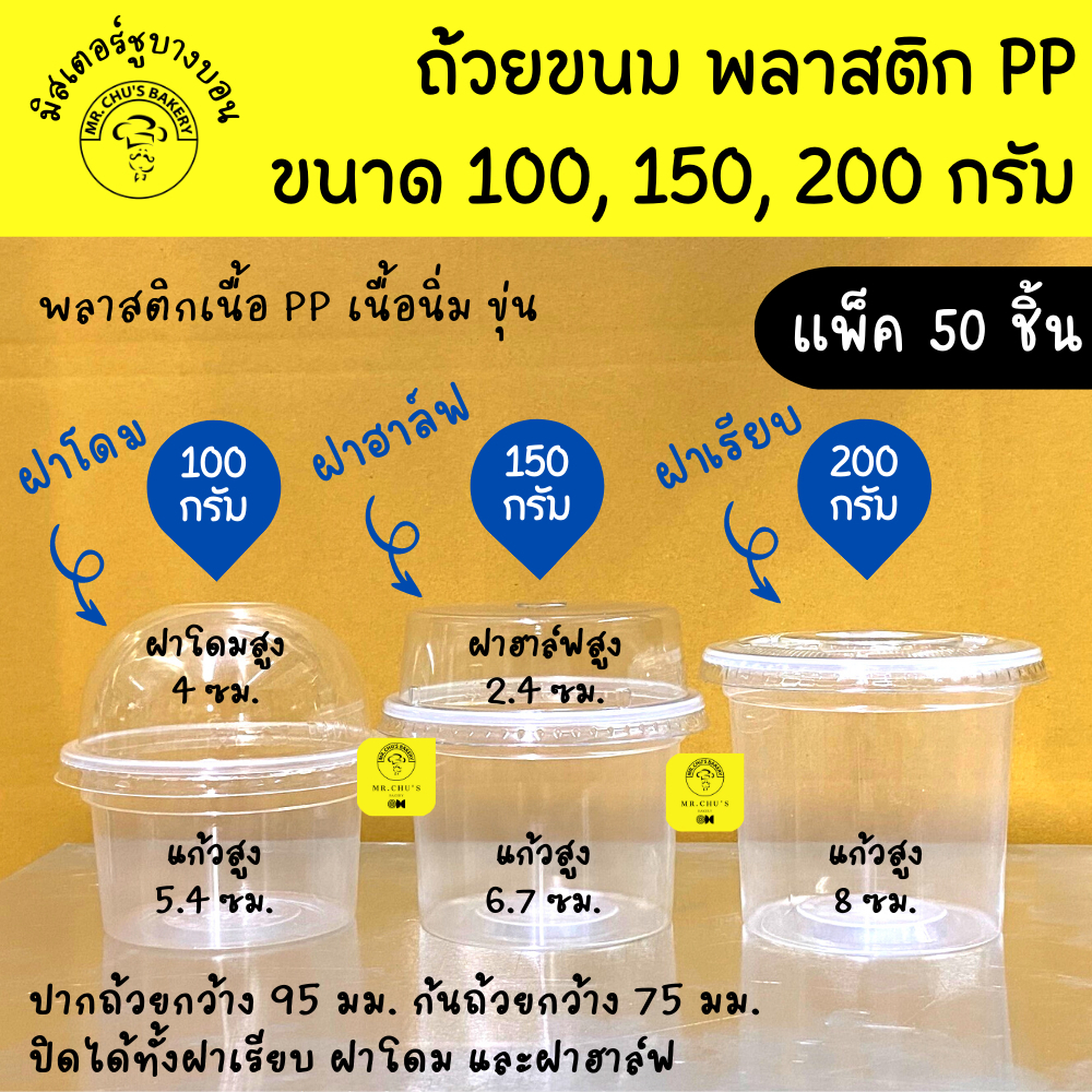 🚀พร้อมส่ง🚀 ถ้วย 100 กรัม 150 กรัม 200 กรัม เนื้อ PP ปาก 95 แพ็ค 50 ชิ้น ฝาเรียบ ฝาโดม ฝาฮาล์ฟ ถ้วยพลาสติก