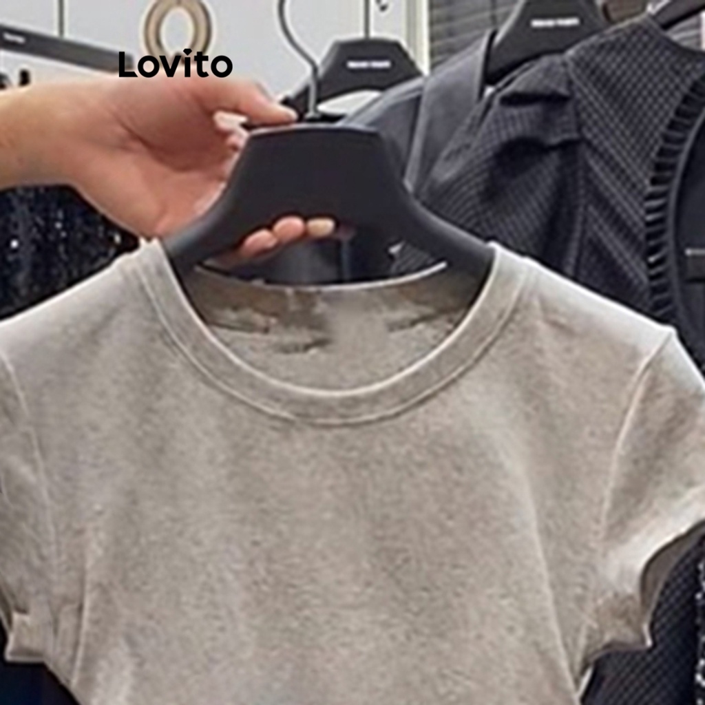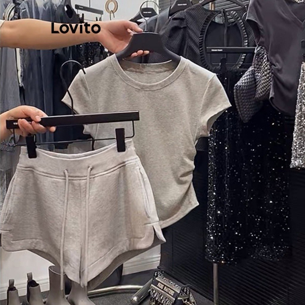 Lovito ชุดกางเกงขาสั้นผู้หญิง เบสิก สีพื้น สไตล์ลำลอง LNA24180 (หลากสี)