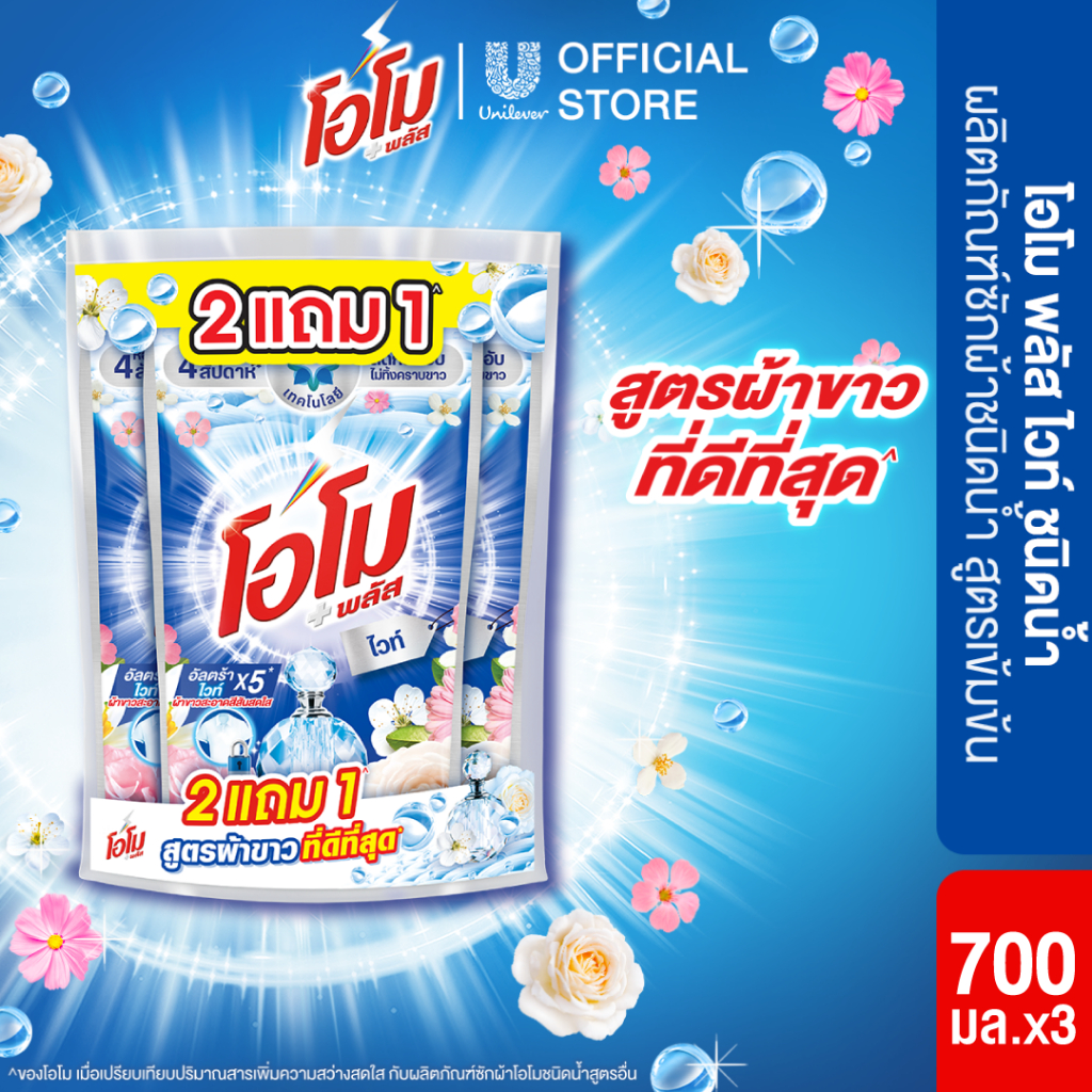 ... าวนาน 4 สัปดาห์* โอโม พลัส ซากุระ โรแมนซ์ ผลิตภัณฑ์ซักผ้าชนิดน้ำ สูตรเข้มข้นที่มาพร้อมกับ ดูโอ บูสท์ เทคโนโลยี ผสาน 2 แอคชั่น ในการทำความสะอาด ขจัดสิ่งสกปรกอย่างมีประสิทธิภาพ พร้อมลดกลิ่นอับ และเติมความหอมแทรกซึมถึงใยผ้า ให้ความหอมละมุนดั่งดอกซากุระบานสะพรั่ง สะอาด สดใส ลดกลิ่นอับ หอมหรูหรามีระดับติดทนยาวนาน 4 สัปดาห์* โอโม พลัส ปารีส เพอร์ฟูม ผลิตภัณฑ์ซักผ้าชนิดน้ำ สูตรเข้มข้นที่มาพร้อมกับ ดูโอ บูสท์ เทคโนโลยี ผสาน 2 แอคชั่น ในการทำความสะอาด ขจัดสิ่งสกปรกอย่างมีประสิทธิภาพ พร้อมลดกลิ่นอับ และเติมความหอมแทรกซึมถึงใยผ้า ให้ความหอมหรูหรา ดุจน้ำหอมชั้นนำจากประเทศฝรั่งเศส สะอาด สดใส ลดกลิ่นอับ หอมหรูหรามีระดับติดทนยาวนาน 4 สัปดาห์* โอโม พลัส มอร์นิ่ง พาราไดซ์ ผลิตภัณฑ์ซักผ้าชนิดน้ำ สูตรเข้มข้นที่มาพร้อมกับ ดูโอ บูสท์ เทคโนโลยี ผสาน 2 แอคชั่น ในการทำความสะอาด ขจัดสิ่งสกปรกอย่างมีประสิทธิภาพ พร้อมลดกลิ่นอับ และเติมความหอมแทรกซึมถึงใยผ้า ให้ความหอมสดชื่นเหมือนดอกไม้ท่ามกลางแสงแดดยามเช้า สะอาด สดใส ลดกลิ่นอับ หอมหรูหรามีระดับติดทนยาวนาน 4 สัปดาห์* โอโม พลัส มิดไนท์ มิราเคิล ผลิตภัณฑ์ซักผ้าชนิดน้ำ สูตรเข้มข้นที่มาพร้อมกับ ดูโอ บูสท์ เทคโนโลยี ผสาน 2 แอคชั่น ในการทำความสะอาด ขจัดสิ่งสกปรกอย่างมีประสิทธิภาพ พร้อมลดกลิ่นอับ และเติมความหอมแทรกซึมถึงใยผ้า ให้ความหอมหรูหรา แม้ซักกลางคืน^ สะอาด สดใส ลดกลิ่นอับ หอมหรูหรามีระดับติดทนยาวนาน 4 สัปดาห์* *จากผลทดสอบในห้องปฏิบัติการโดยผู้เชี่ยวชาญด้านน้ำหอม เมื่อเก็บผ้าไว้ในตู้ 4 สัปดาห์ เมื่อ พ.ศ. 2566 ^จากผลการทดสอบในห้องปฏิบัติการ การลดกลิ่นอับบนผ้า ในปี 2566 วิธีใช้ 1. ป้ายผลิตภัณฑ์เล็กน้อยลงบนจุดที่ต้องการทำความสะอาดเป็นพิเศษก่อนซัก 2. ในกรณีซักเครื่อง ควรเทผลิตภัณฑ์ลงในช่องสำหรับใส่ผงซักฟอกโดยเฉพาะ ในกรณีซักมือ ควรละลายผลิตภัณฑ์ในน้ำให้ทั่วก่อนนำผ้าลงแช่หรือซัก แล้วล้างออกด้วยน้ำสะอาด 1 ครั้ง = 35 มล. ต่อปริมาณผ้า 15 – 20 ชิ้น โอโม พลัส ไวท์ ชนิดน้ำ ผลิตภัณฑ์ทำความสะอาดผ้าที่ออกแบบมาเพื่อผ้าขาวโดยเฉพาะ ช่วยลดคราบเหลืองสะสม มาพร้อมกับ ดูโอ บูสท์ เทคโนโลยี ผสาน 2 แอคชั่น ในการทำความสะอาด ขจัดสิ่งสกปรกอย่างมีประสิทธิภาพ พร้อมเติมความหอมแทรกซึมถึงใยผ้า ให้ความหอมติดทนยาวนาน 4 สัปดาห์^ ขาวสะอาดสดใส ลดกลิ่นอับ สวมใส่เสื้อผ้าได้อย่างมั่นใจ ตอกย้ำที่สุดของความขาวจากโอโม ด้วย อัลตร้า ไวท์ x5* ช่วยให้ผ้าขาวสะอาดสีสันสดใส วิธีใช้ 1. ป้ายผลิตภัณฑ์เล็กน้อยลงบนจุดที่ต้องการทำความ