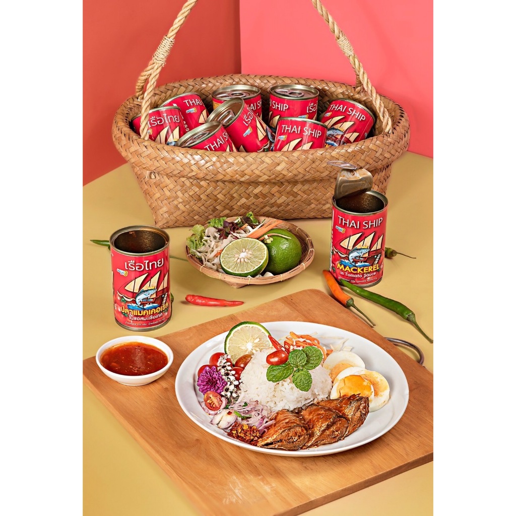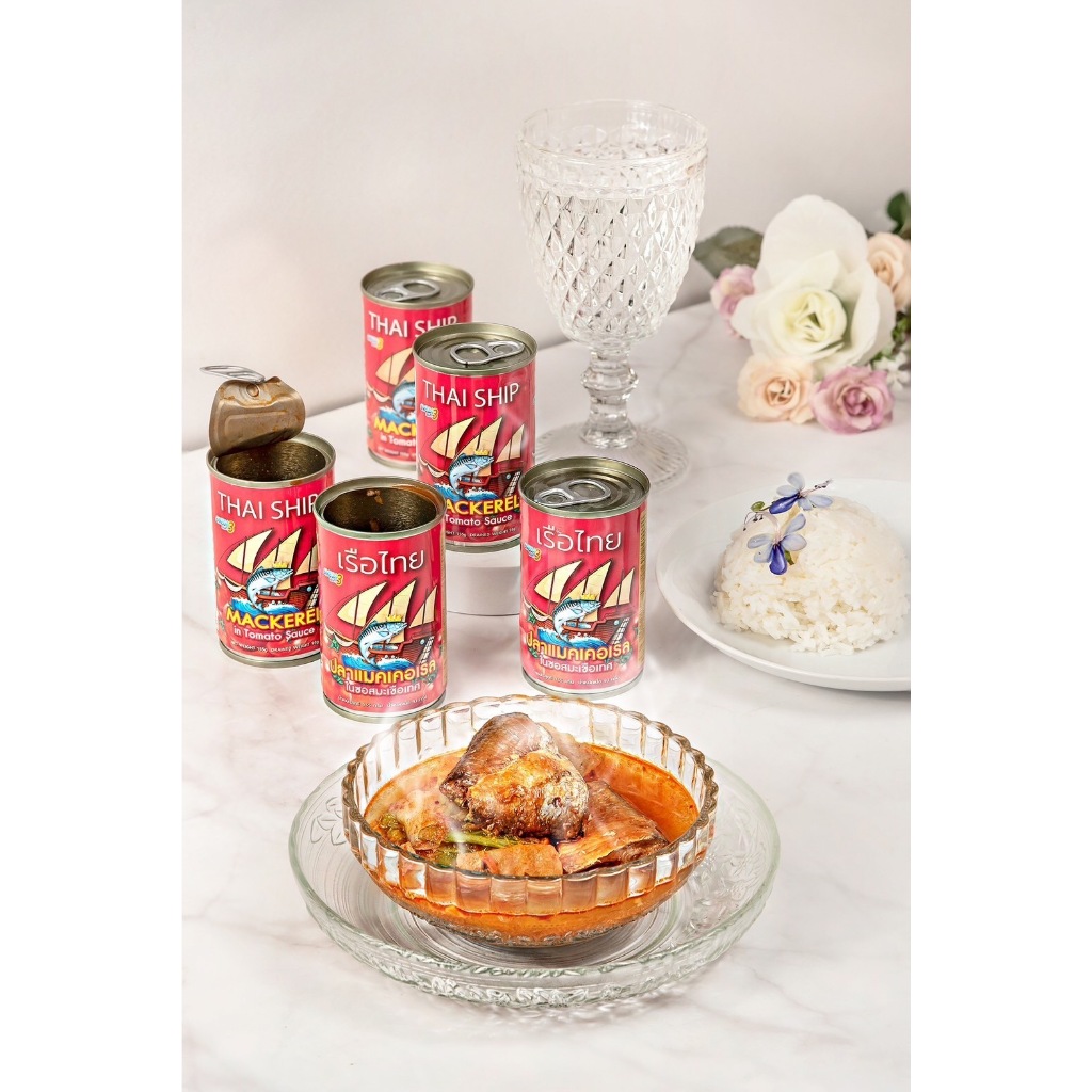 🥫ปลากระป๋องตราเรือไทย สูตรปลาแมคเคอเรลในซอสมะเขือเทศ 🥫 เนื้อปลาแน่น ซอสเข้มข้น ผ่านการรับรองจาก เครื่องหมายฮาลาล มาตรฐาน GMP อย.75-1-56547-5-0027 ระยะเวลาเก็บรักษานาน 3 ปี น้ำหนักสุทธิ 155 กรัมต่อกระป๋อง . 🚩ส่วนประกอบ ปลาแมคเคอเรล ซอสมะเขือเทศ น้ำตาล เกลือ โมโนโซเดียมกลูตาเมต ไม่ใส่ว