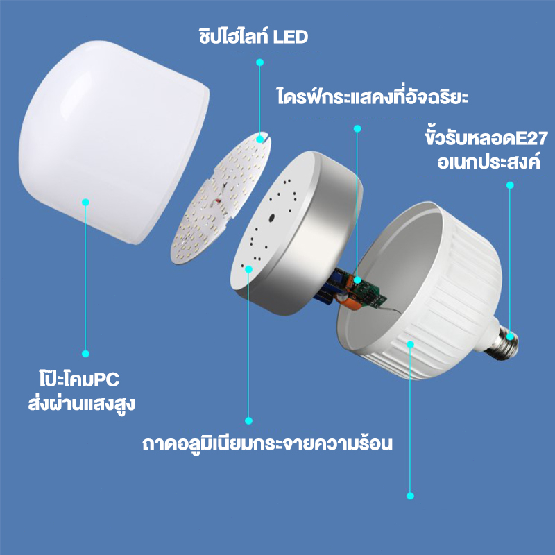 หลอดไฟ LED หลอดไฟ E27 แสงสีขาว หลอดไฟขั้วเกลียว 220V 20W 30W 40W 50W 60W หลอดไฟประหยัด LED HighBulb หลอดไฟบ้าน