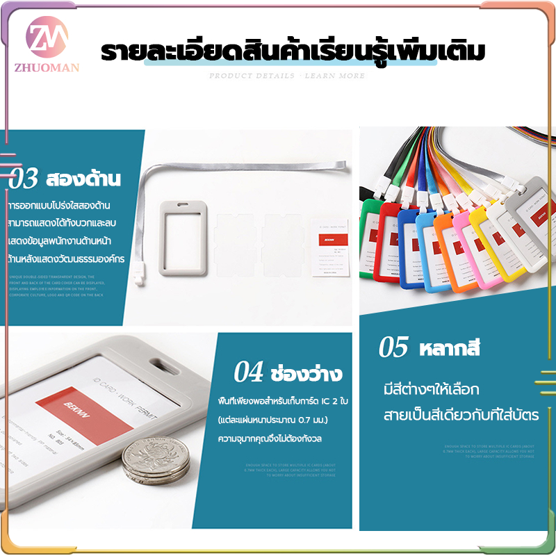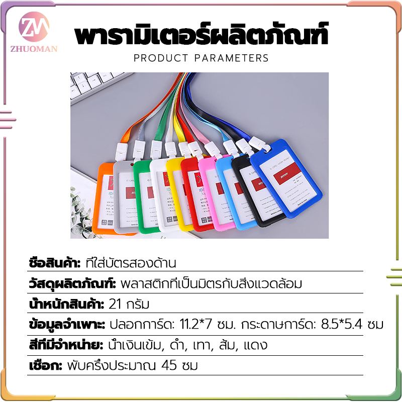 ที่ใส่บัตร+สายคล้องคอ พนักงาน มีหลากหลายสี กรอบบัตรหน้า-หลังเป็นพลาสติกใส น้ำหนักเบา วัสดุที่เป็นมิตรกับสิ่งแวดล้อม