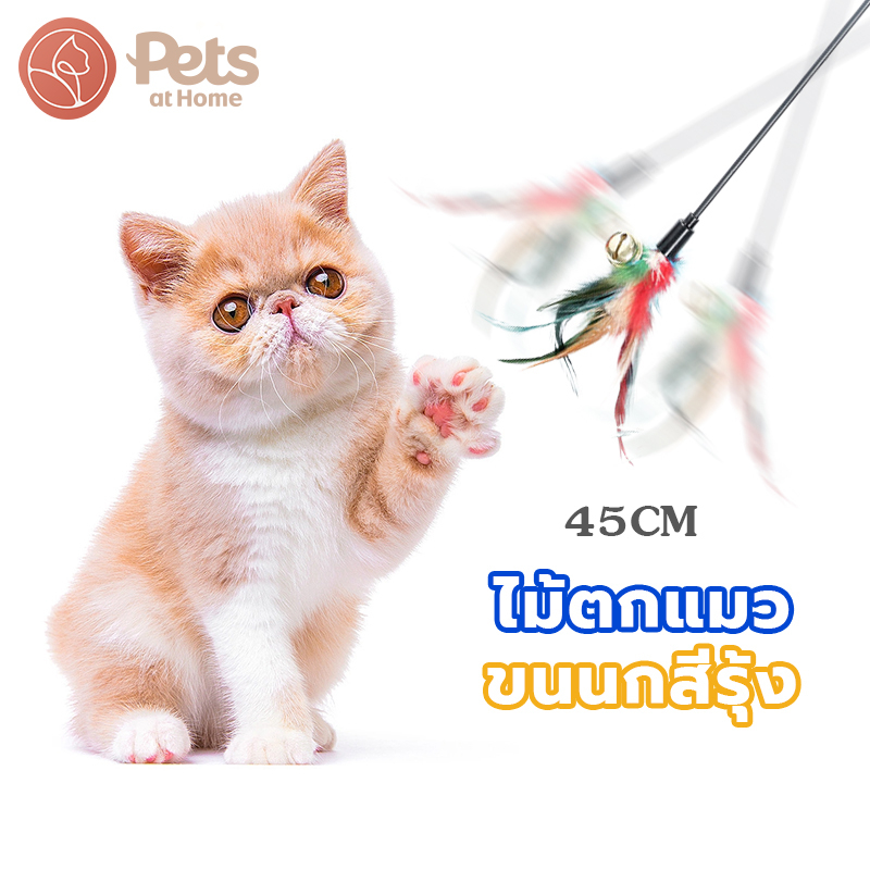 ไม้ตกแมว ไม้แมว ไม่ล่อแมว สำหรับแมว ไม้ตกแมว แมว ของเล่นสำหรับแมว ของสัตว์เลี้ยง ของเล่นแมว รุ่น ขนนกหลายสี มีกระดิ่ง
