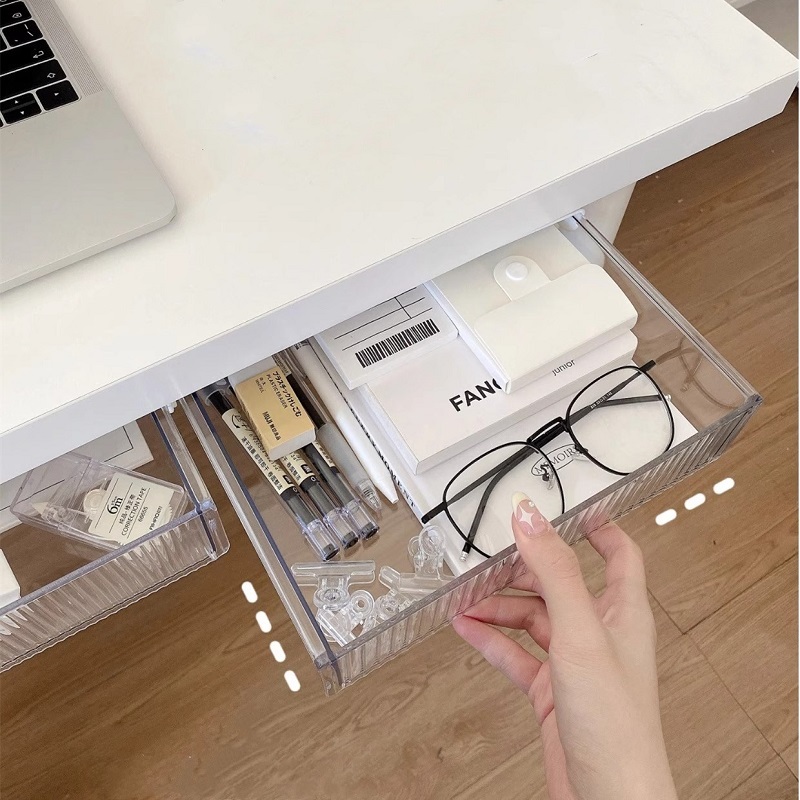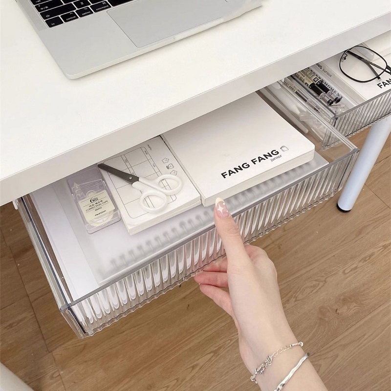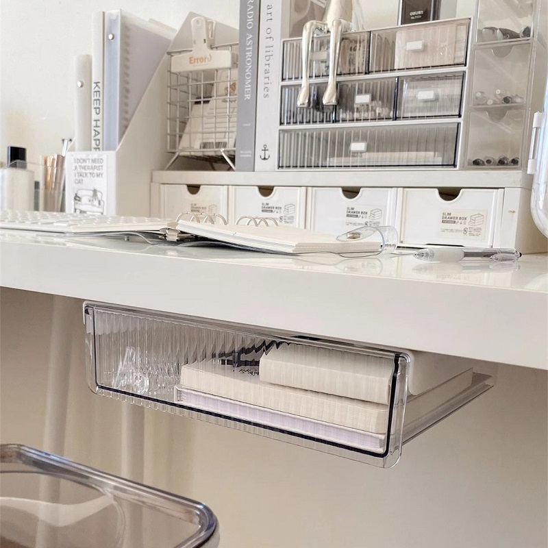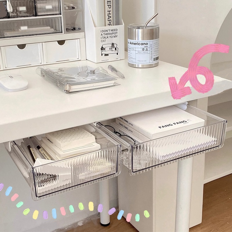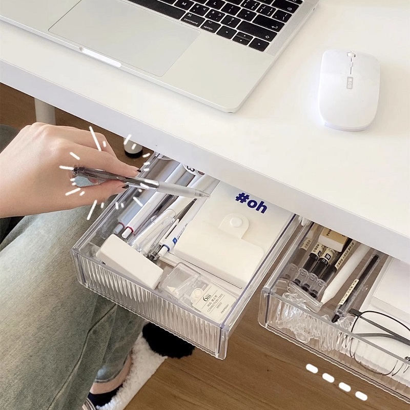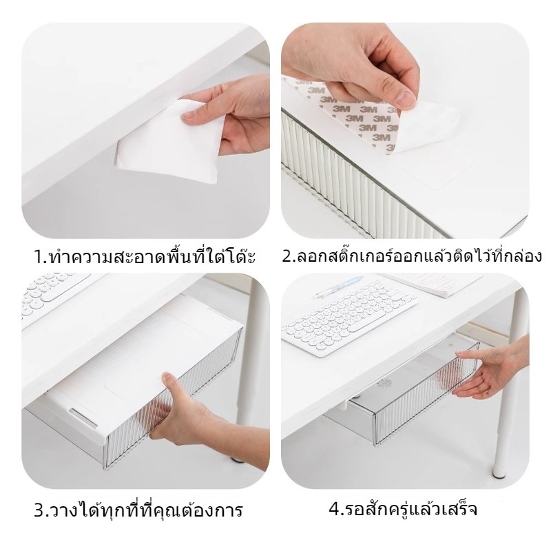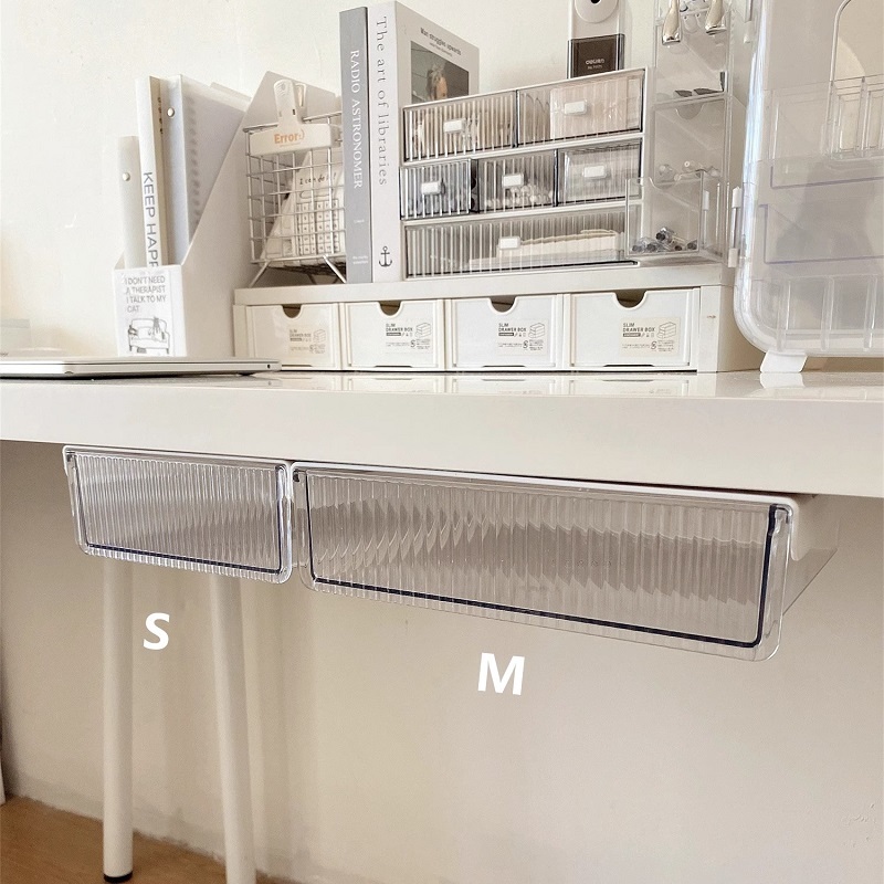 กล่องเก็บของ ลิ้นชักใต้โต๊ะ กล่องพลาสติกใส ติดตั้งง่าย ลิ้นชักติดใต้โต๊ะ ลิ้นชักอเนกประสงค์ KKHOME