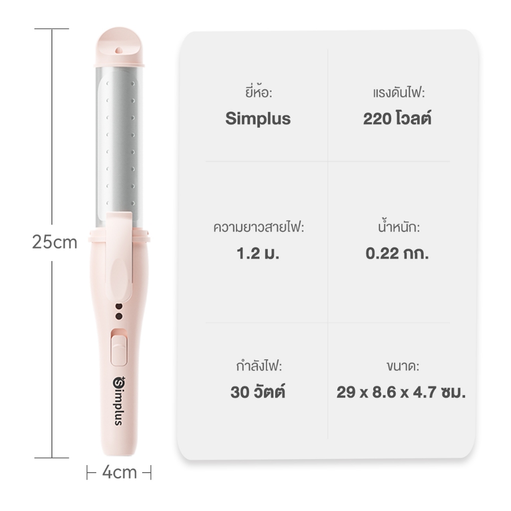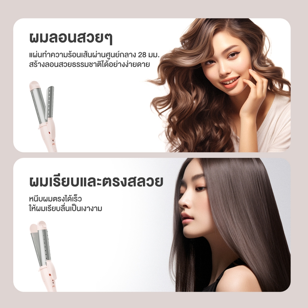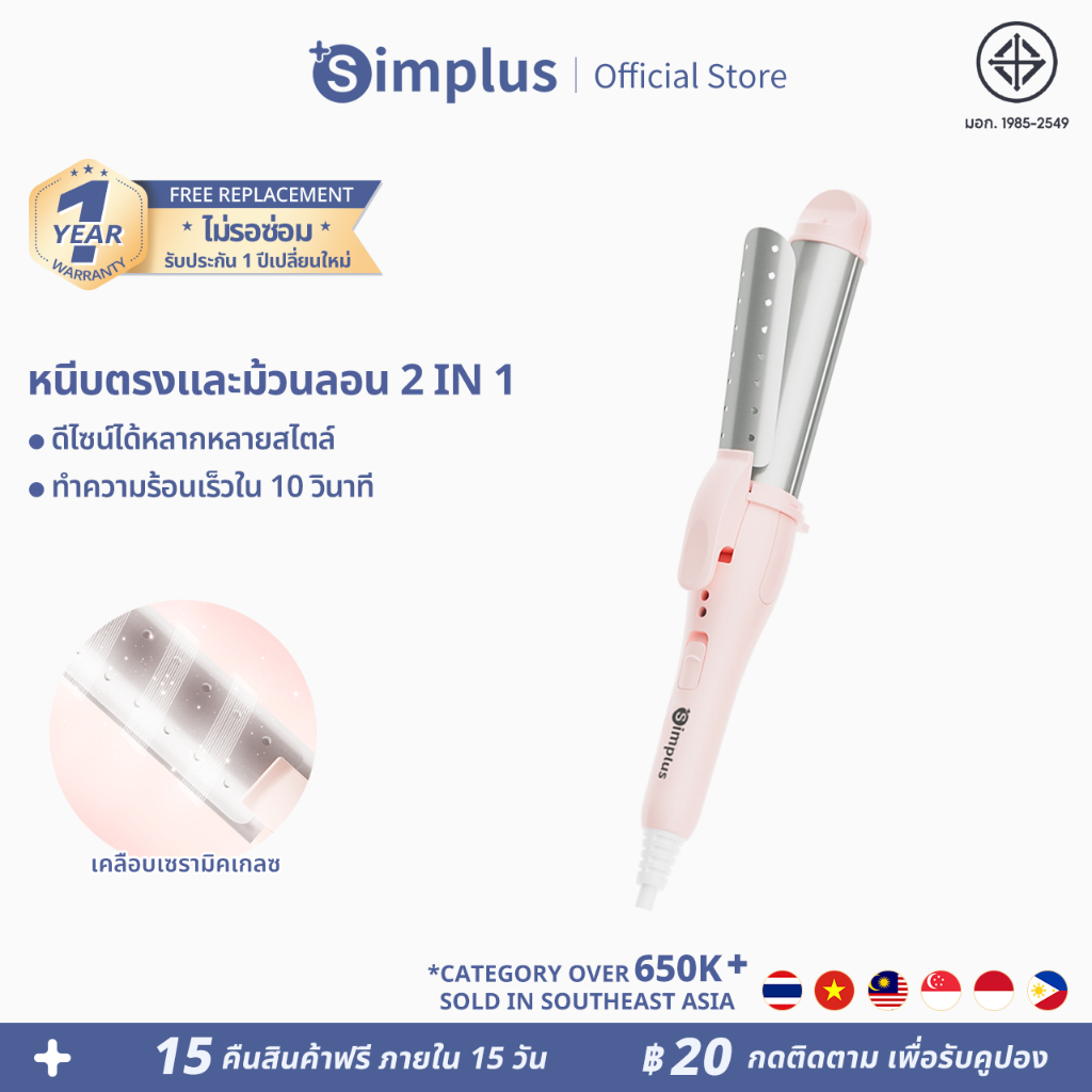Simplus หนีบตรงและม้วนลอน 2 in 1 เปิดง่ายในคลิกเดียว สลับได้หลากหลายสไตล์ 28 มม. ปรับอุณหภูมิได้ 2 ระดับ JFBA009