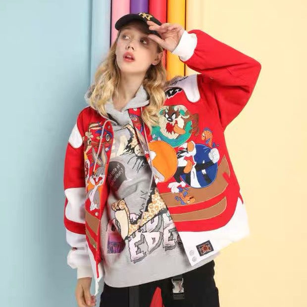 [เสื้อแจ็กเก็ต] เสื้อแจ็กเก็ตเบสบอล แบบหนา สไตล์ฮิปฮอป แฟชั่นฤดูใบไม้ผลิ และยุโรป แนวสตรีท 2023