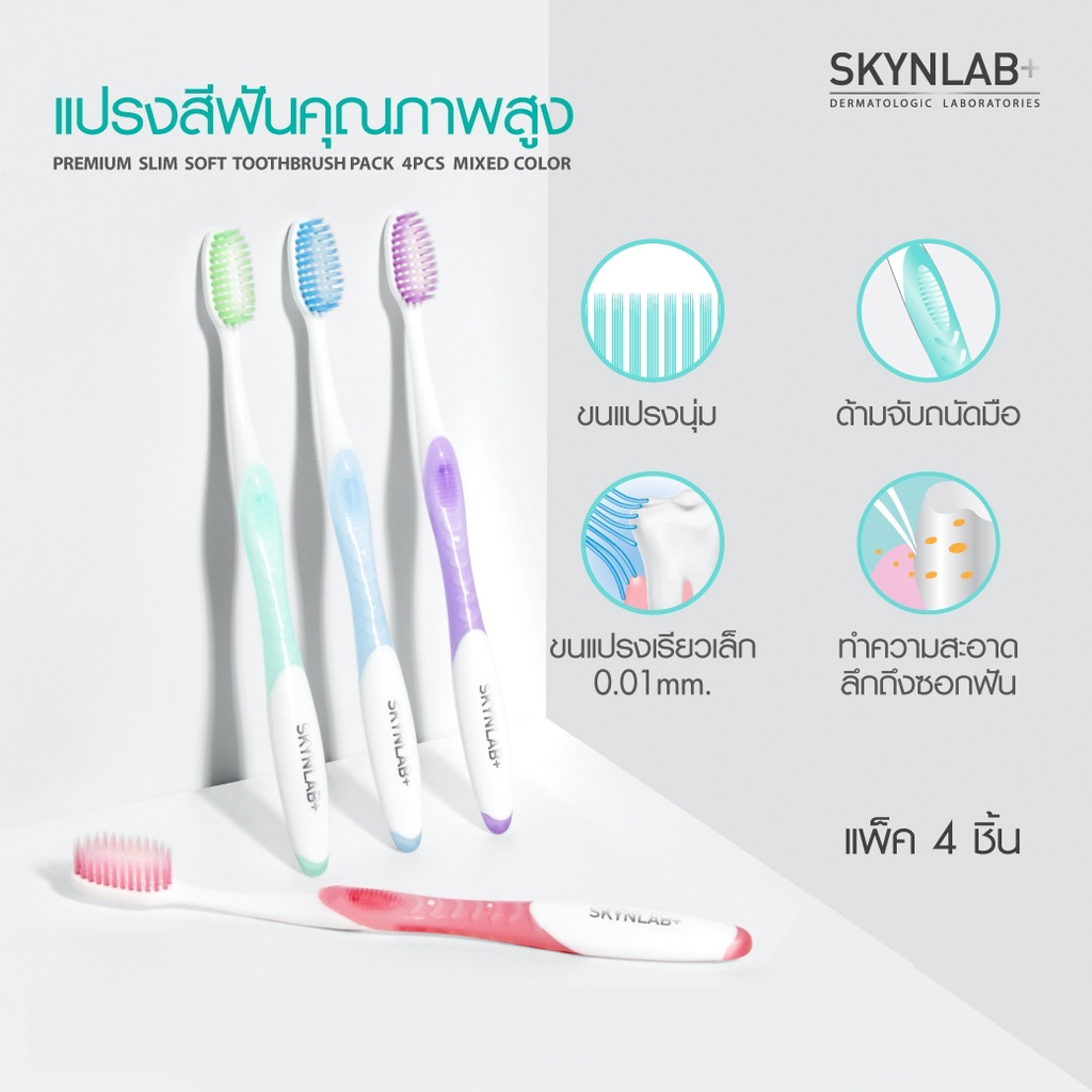 ถูก/แท้/มีไลฟ์ (แพค 4 ด้าม) แปรงสีฟัน Skynlab Premium Slim Soft Toothbrush ขนแปรงเรียวเล็ก สกินแล็บ