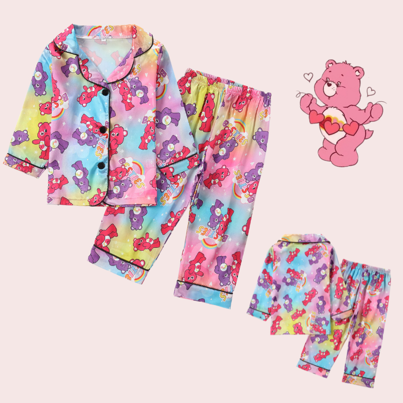 Care Bearsชุดนอนเด็ก ชุดนอนผ้าซาตินเด็ก ชุดนอนเด็กผู้หญิง ชุดนอนเด็กผู้ชาย แขนยาว+กางเกงขายาว