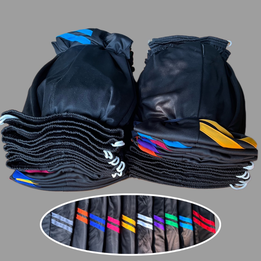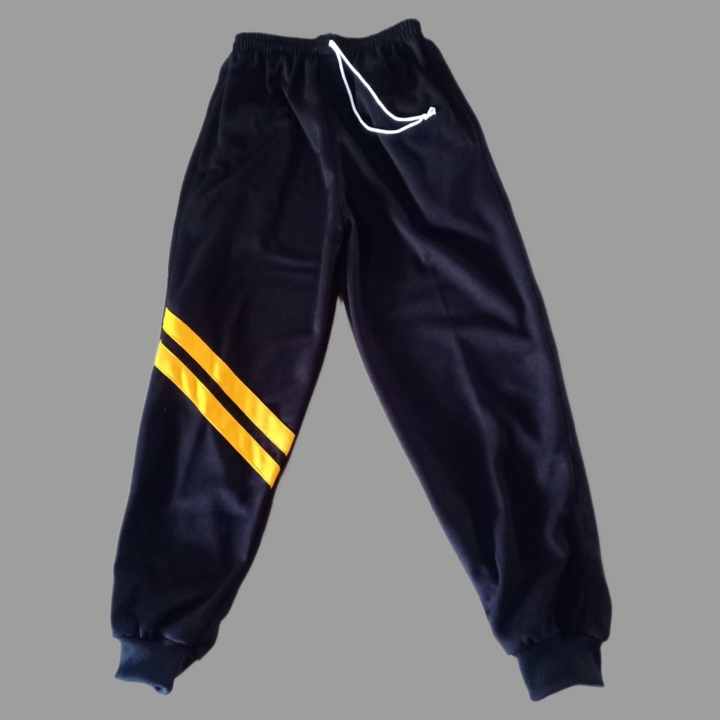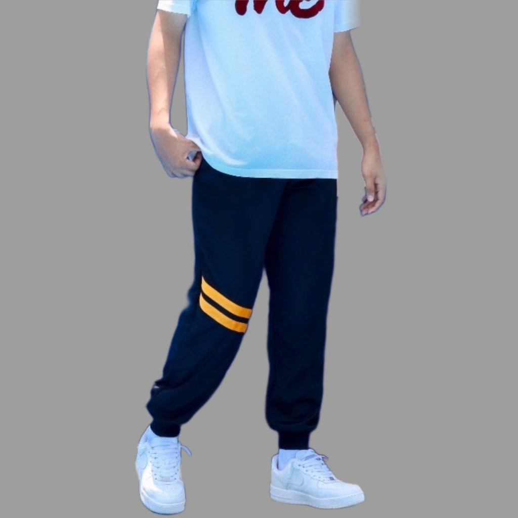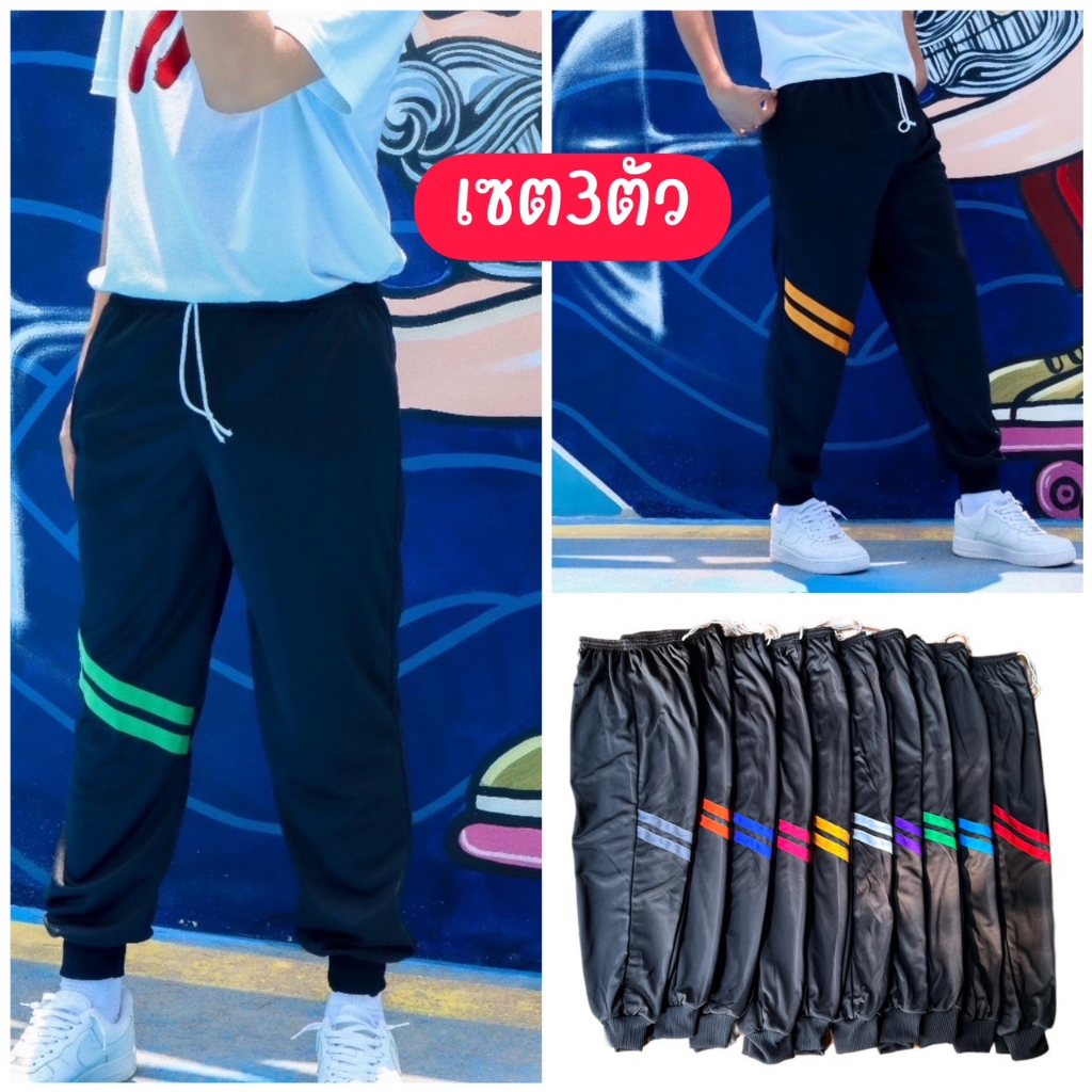 (เซต3ตัว) กางเกงวอร์มขาจั้ม แต่งคาดเข่า ขนาดฟรีไซต์ ชาย-หญิงใส่ได้ พื้นกางเกงสีดำ
