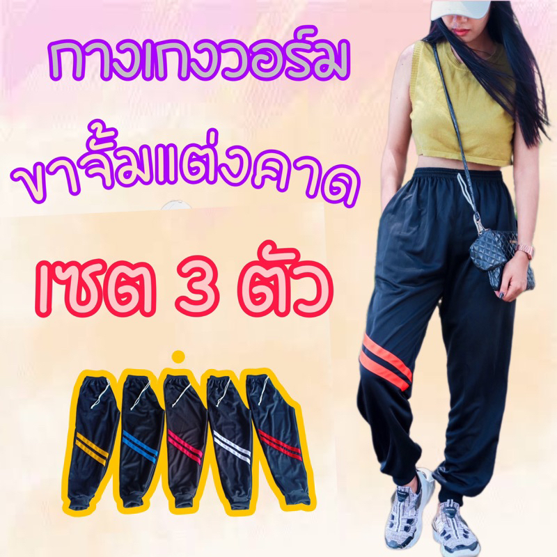 ● กางเกงวอร์มแต่งแถบขาจั้ม แต่งแถบคาดเข่า เนื้อผ้าทนทาน ใส่ทำงาน ใส่สบายๆ เป็นกางเกงลำลองก็ดี อยู่บ้านก็ดี ● แถบทางร้านจะคละสีไปให้ ทั้ง 3 ตัว (ไม่ซ้ำสี) ● สินค้าพร้อมส่งทันที ไม่ใช่พรีออเดอร์ ● มีเก็บเงินปลายทาง สินค้ามีพร้อมส่งตามสต็อก ลูกค้าสามารถสั่งได้เลยค่ะ** ● ทางร้านจัดส่งสินค้าทุกวันจ