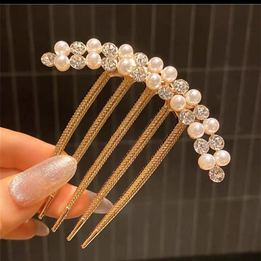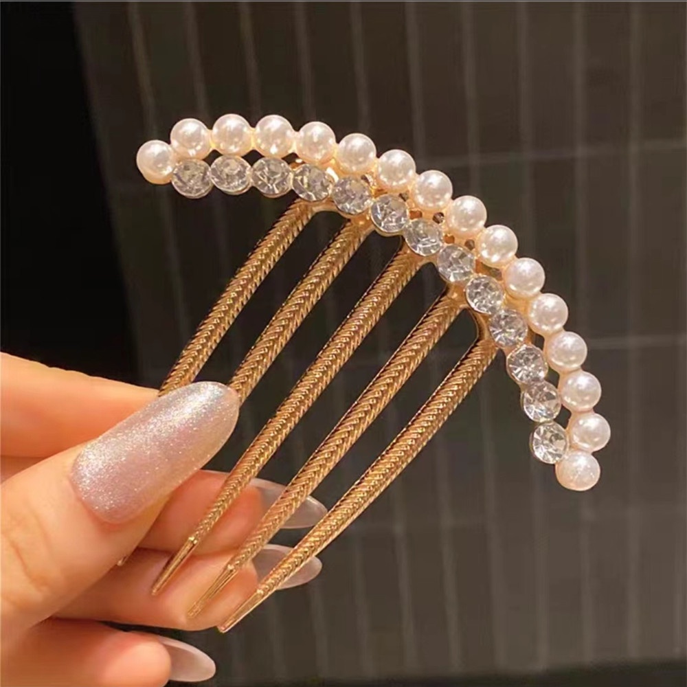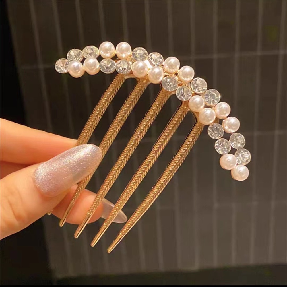 หวีสับผม ฝังพลอยเทียม สไตล์เกาหลี สําหรับผู้หญิง