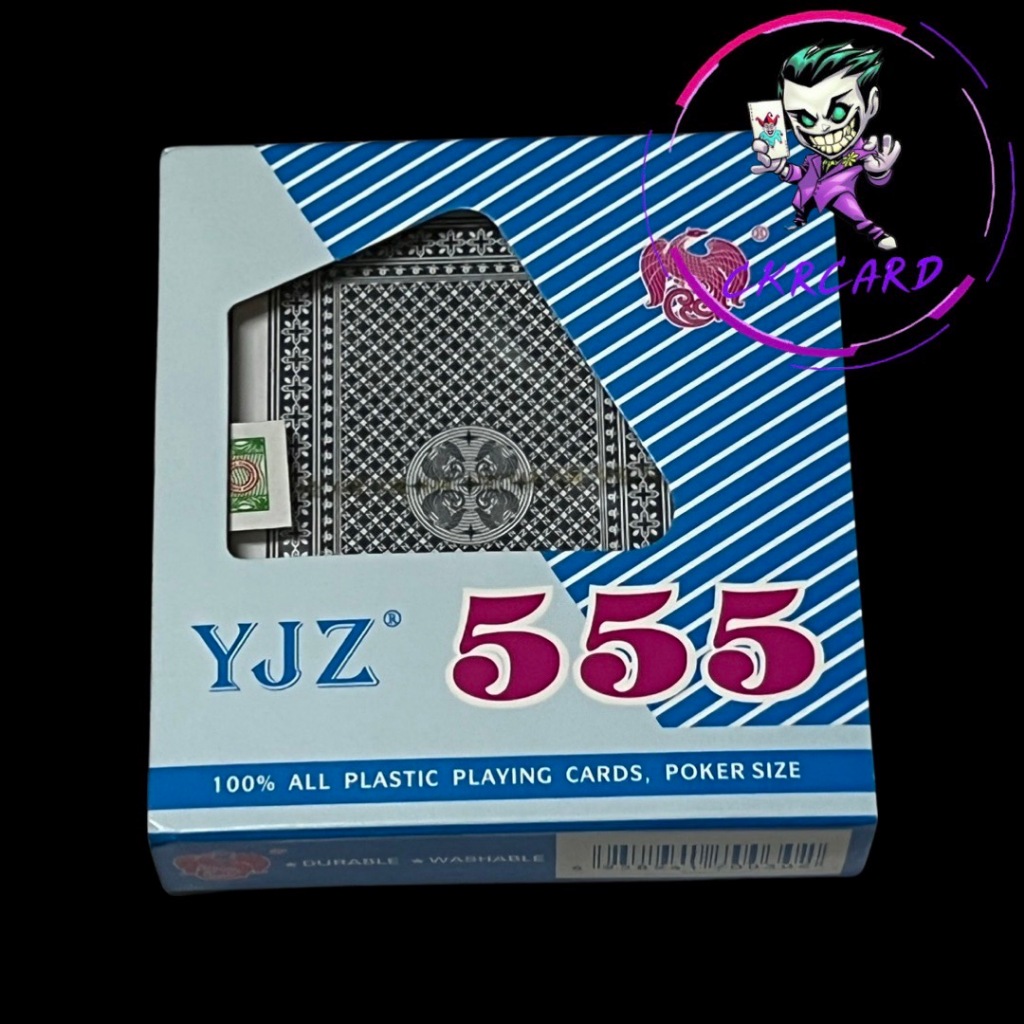 พลาสติก ขอบทอง 555 YJZ อย่างดี (1 สำรับ) ขนาดมาตรฐาน : 62*87 หนา : 0.27 - 0.30 จำนวน : 52+2ใบ เคลือบ PVC กันน้ำ ลื่น ๆ หน้าหลัง สินค้าใช้เพื่อนันทนาการ