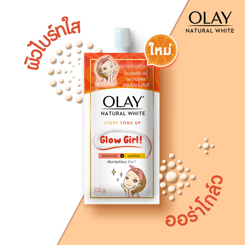 💛 Olay Natural Aura Light 7.5g ผิวดูกระจ่างใสอย่างเป็นธรรมชาติ ผสานพลังทริปเปิ้ล นูเทรียนซิสเต็ม มีวิตามินบี3 โปรวิตามินบี5 และวิตามินอี ผสานคุณค่าครีมไวท์เทนนิ่งมอบผิวเปล่งปลั่งอิ่มน้ำ รวมมอยส์เจอร์ไรเซอร์เติมความชุ่มชื้นให้กับผิว มีสารกันแดด SPF ปกป้องผิวจากแสงแดด ช่วยแก้ไขปัญหาสีผิวไม่สม่ำ