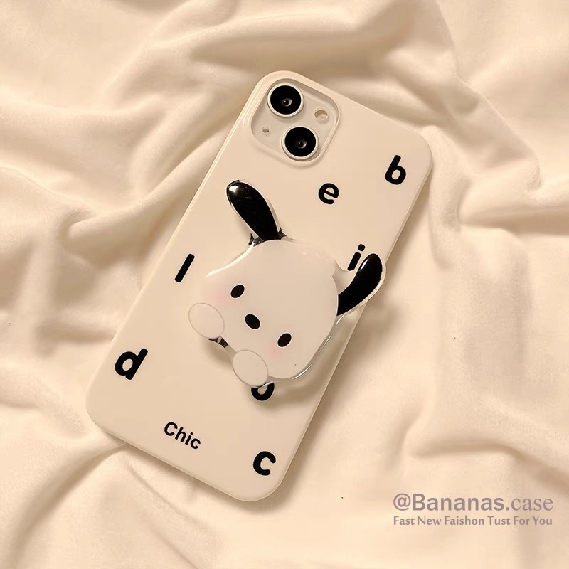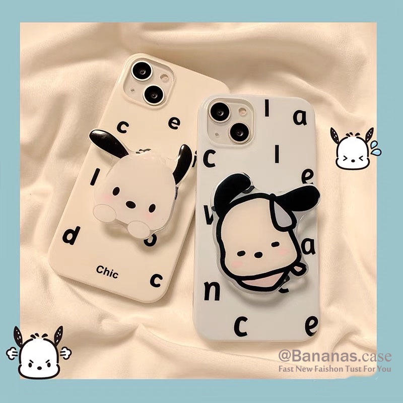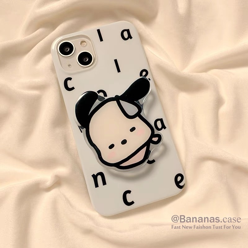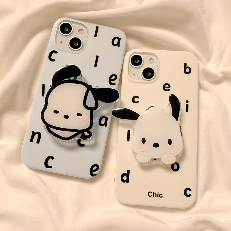 เคสโทรศัพท์มือถือนิ่ม ลายการ์ตูนสุนัข Pacha พร้อมขาตั้ง สีดํา สําหรับ iPhone 15 14 13 12 11 Pro Max X Xr Xs Max 7 8 Plus SE2020