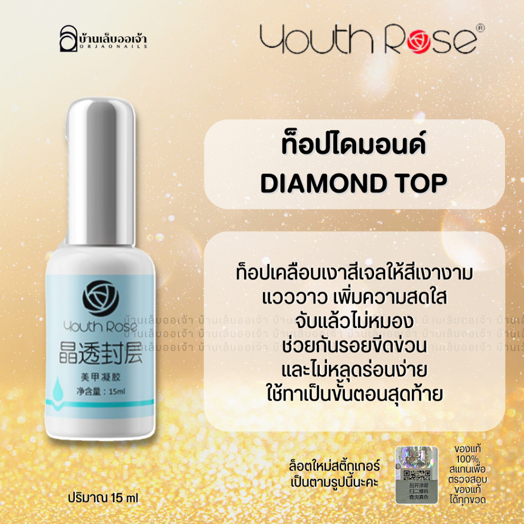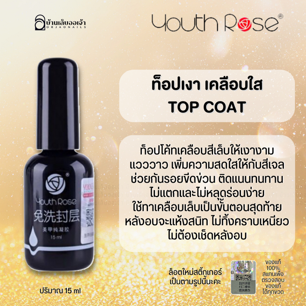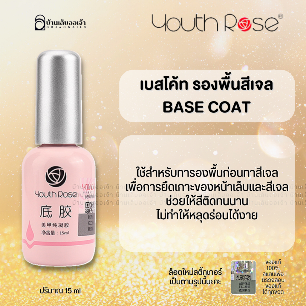 Youth Rose เบสท็อป​ เบสกุหลาบ ท็อปกุหลาบ เบสเจลทาเล็บ ท็อปเจล เคลือบเล็บเจล เบสโค้ท ท็อปโคทเล็บ