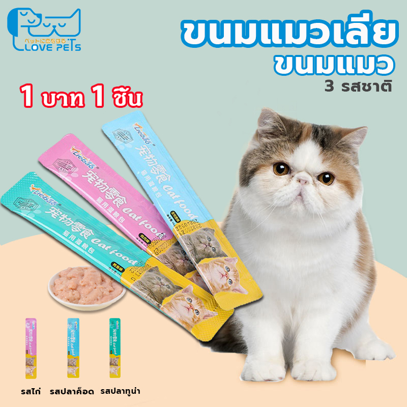 ขนมเเมวเลีย 15g มีให้เลือก3รส cat snack stick แมวเลีย อาหารแมวเลีย cat ขนมแมวเลีย รสไก่ / ปลาคอด / ทูน่า cat ชอบมาก