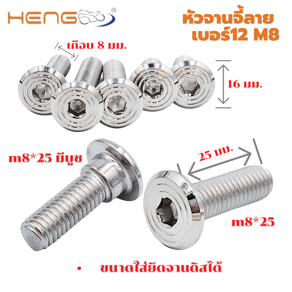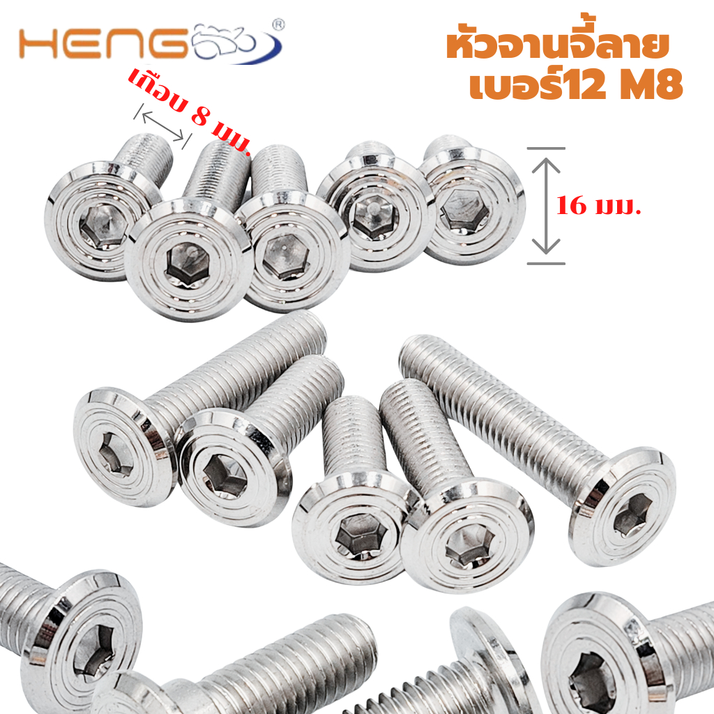 น๊อตหัวจาน จี้ลาย เบอร์12 m8 ยาว20-40มม. งานเฮงสกรู งานสแตนเลส เกรด 304 เงาวิ๊งๆ แข็งแรง ไม่เป็นสนิม งานระดับส่งออก ผลิตโดยโรงงานชั้นนำ Heng Screw ไม่ใช่งานจากจีน หรือโรงกลึงทั่วไป จึงมั่นใจได้ 100% งานขนาด เกลีบวเบอร์ 12 หรือ m8 ความยาว 20-40 มิล