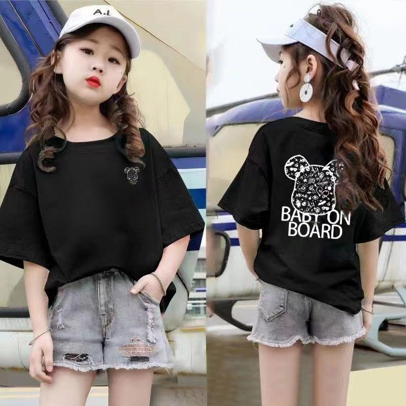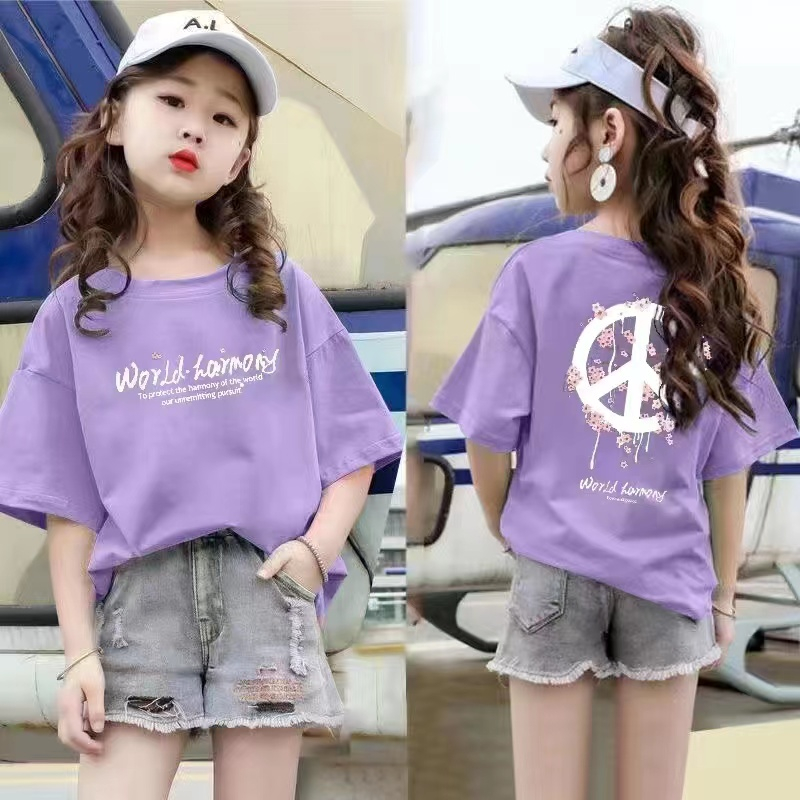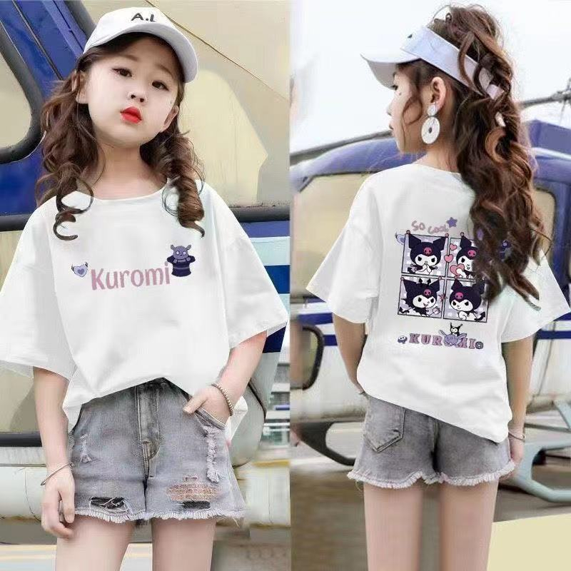 【จัดส่งจากประเทศไทย】🌼พร้อมส่ง🌼คุโรมิ เสื้อยืดคอกลมเด็กหญิงเสื้อยืดคอกลมแขนสั้นฤดูร้อนหลวมเด็กผู้ชายขนาดกลาง4 5 6 7 8 9 10 11 12ขวบ และเด็กหญิงเสื้อยืดคอกลม