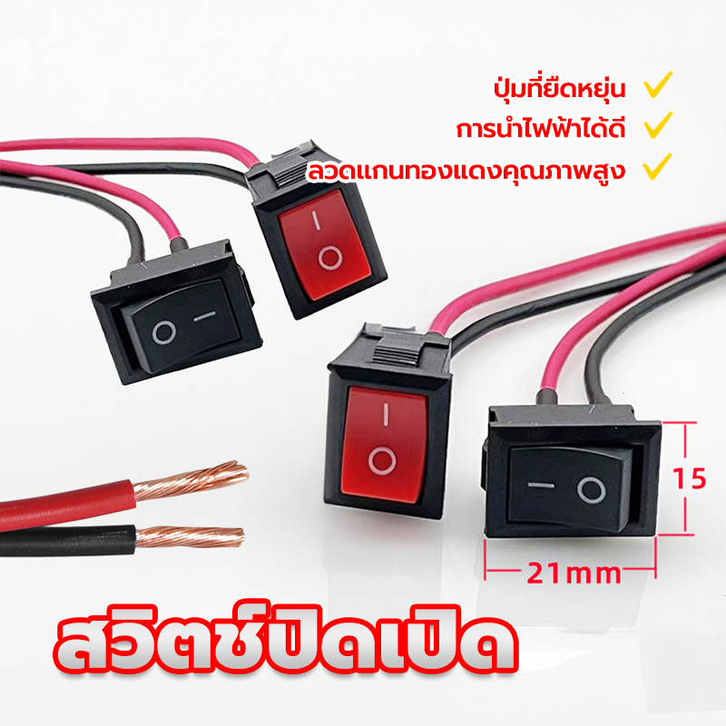 สวิตช์ปิดเปิด สวิตซ์ไฟ เปิด-ปิด ( 1 ตัว) 15*21มม/สายยาว10ซมข นาดเล็ก ปุ่มที่ยืดหยุ่น การนำไฟฟ้าที่ดี ลวดแกนทองแดงคุณภาพส