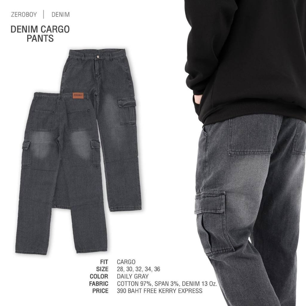 ZEROBOY - “ GREY DENIM CARGO PANTS ” คาร์โก้ยีนส์สีเทา