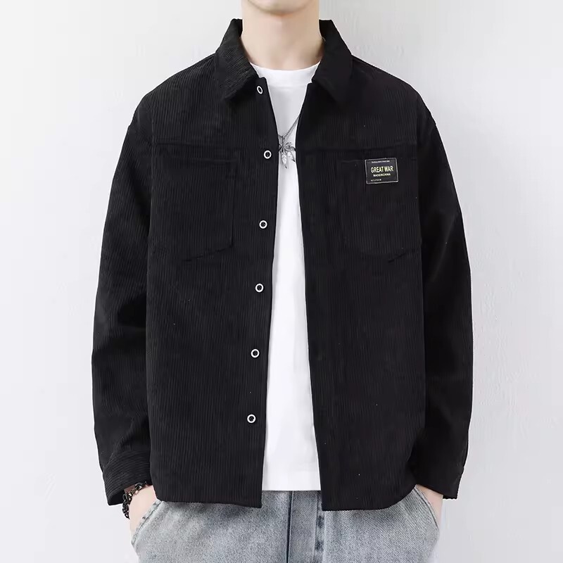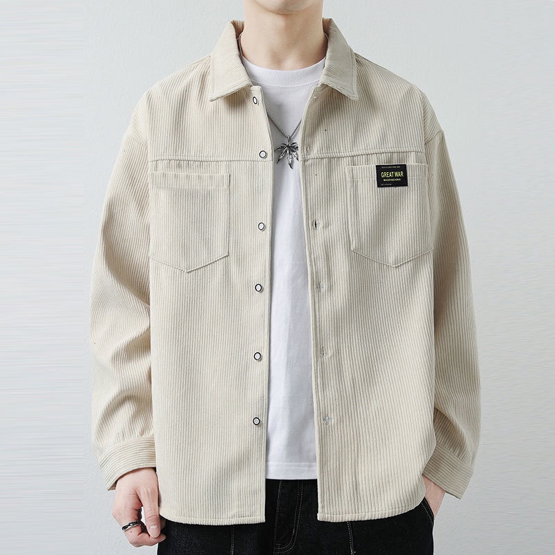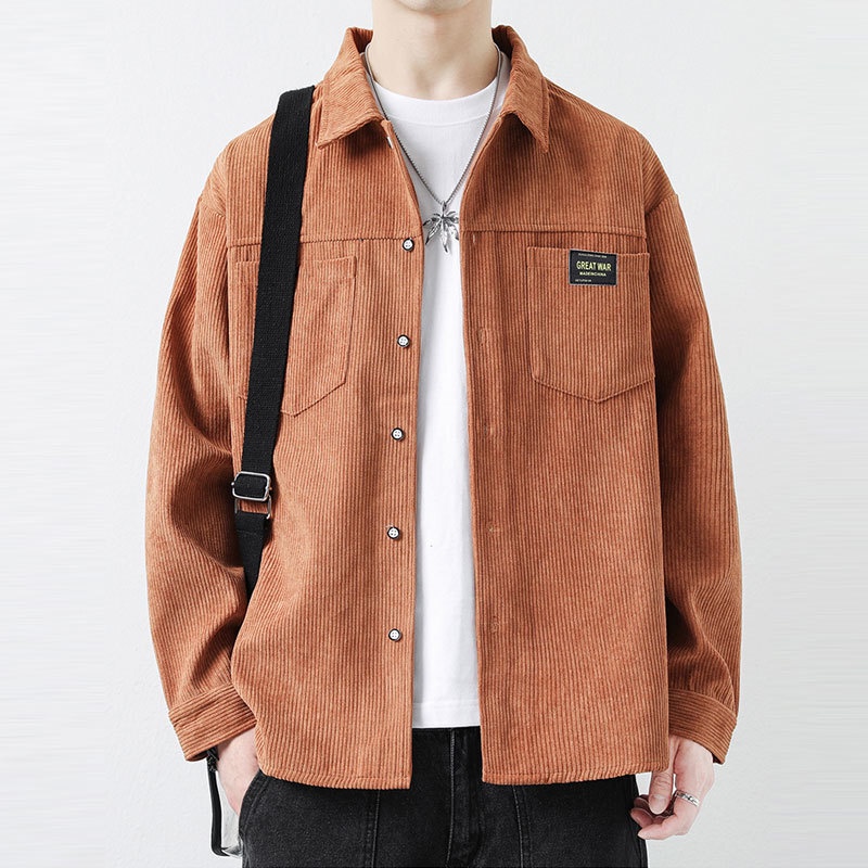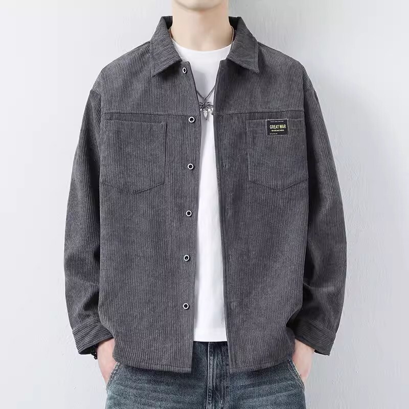 เสื้อเชิ้ตผู้ชาย สีกากีแฟชั่นเกาหลีหลวมขนาดบวกเสื้อเชิ้ตแขนยาวลำลองผู้ชาย