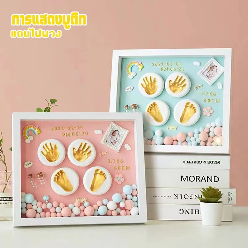 แถมไฟ!DIY ชุดปั๊มมือเท้าเด็ก กรอบไม้เนื้อแข็ง(ของขวัญเด็กแรกเกิด/ปั้มเท้าเด็กแรกเกิด ปั๊มมือ ปั๊มเท้า ที่พิมพ์รอยมือและร