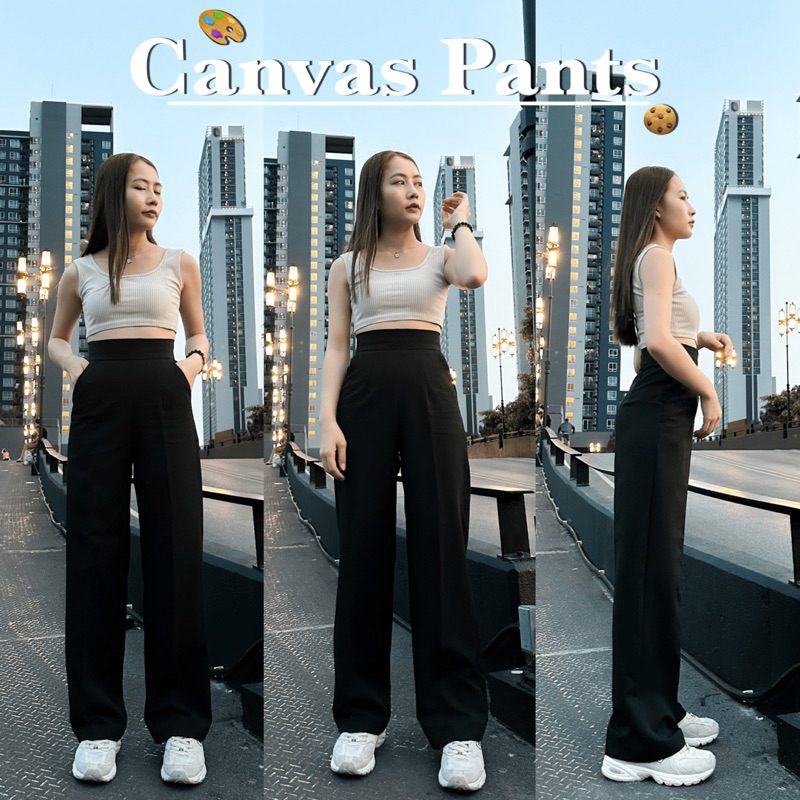 กางเกงซิปหลังขากระบอกกลางกึ่งใหญ่ รุ่น Canvas Pants เนื้อผ้า A80 เนื้อผ้ายืดหยุ่นนิดหน่อยน๊า (ไซส์ก้ำกึ่ง เช่น S-M แนะนำให้เผื่อไซส์เป็น M) ถ้าชอบใส่ฟิตใส่แน่น ใส่เป๊ะ ไม่ต้องเผื่อไซส์นะคะ ลงตามไซส์ปกติได้เลยค่ะ ขึ้นอยู่กับความชอบของแต่ละคนเลยนะคะ ผ้าไม่บางและไม่หนาจนเกินไปใส่สบายเนื้อผ้าไม่ร