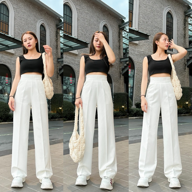 รุ่นยาว43-44 กางเกงขายาวทรงกระบอกกลางกึ่งใหญ่ ดีเทลซิปหลัง เอวสูง ผ้า A80 มีหลายสีให้เลือก สูง 164-180 ใส่ได้ไม่ลอย