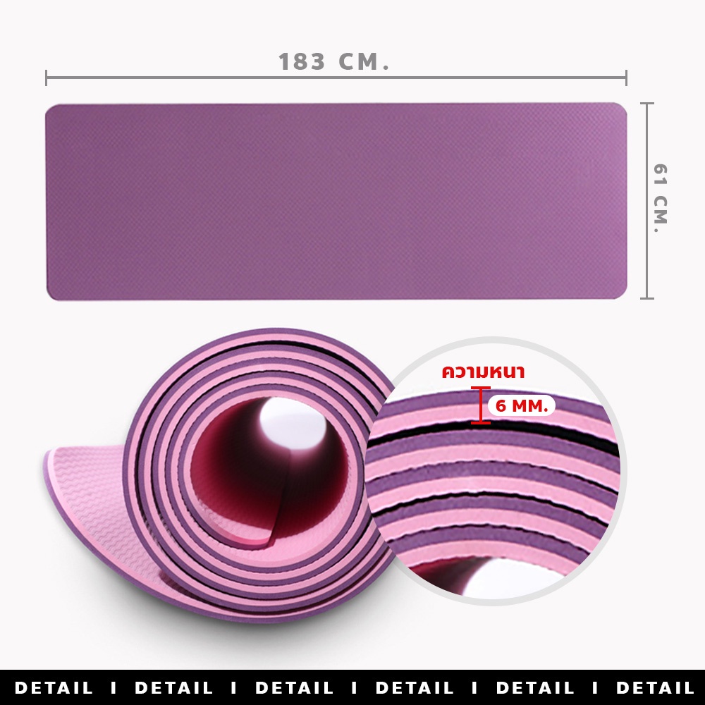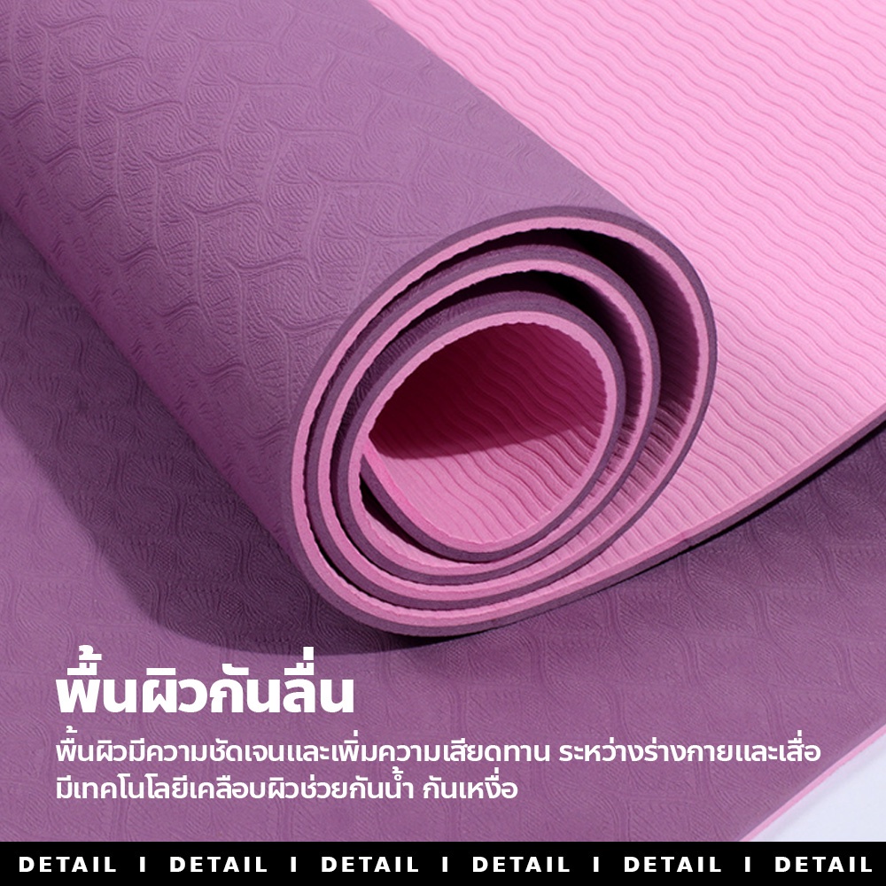 เสื่อโยคะ TPE ทูโทน yoga mat แผ่นรองออกกำลังกาย หนา 6mm กันลื่น กันน้ำ ไม่ทำร้ายผิว