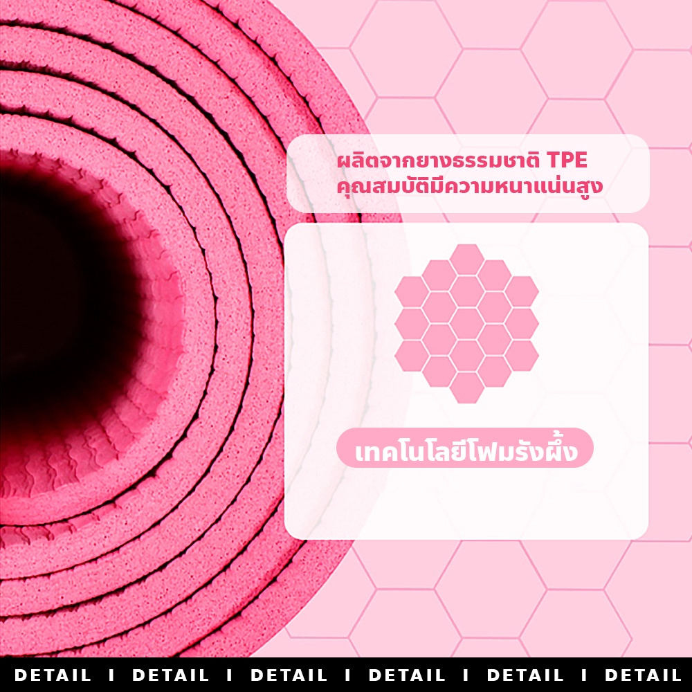 🔸รายละเอียดสินค้า🔸 ขนาดกว้าง 61 ซม. ยาว 183 ซม. ความหนา 6 มิลลิเมตร ใช้งานได้ทั้ง 2 ด้าน เสื่อโยคะยางธรรมชาติ TPE มีเทคโนโลยีเคลือบผิวช่วยกันน้ำ กันเหงื่อ และกันลื่น เป็นมิตรกับสิ่งแวดล้อม มีคุณสมบัติช่วยลดการเกิดแบคทีเรีย กลิ่นอับชื้น ความชื้นต่ำ ระบายอากาศได้ดี มีความอ่อนนุ่มแต่ไม่ยุบตัว แข็