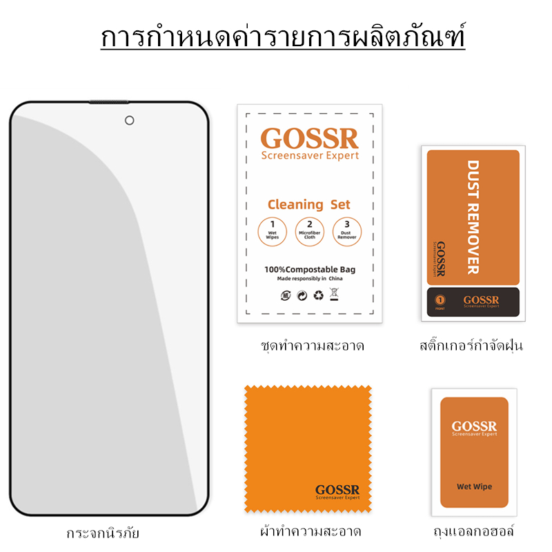 ... เกตเห็นความเสียหายต่อผลิตภัณฑ์ของคุณหรือข้อบกพร่อง กรุณาส่งวิดีโอหรือรูปภาพที่ชัดเจนให้กับผู้ดูแลระบบผ่านทางแชท เราจะจัดให้มีพนักงานคลังสินค้าโดยเร็วที่สุดส่งถึงคุณเรารับผิดชอบค่าขนส่ง ให้บริการหลังการขายที่เป็นมิตรกับลูกค้ามากขึ้น • เราเชื่อว่าหลังจากการทำธุรกรรมทุกครั้งเราจะมีเพื่อนเพิ่มขึ้นอีกหนึ่งคน** • เป็นความรับผิดชอบของ GOSSR ในการจัดหาผลิตภัณฑ์ที่มีคุณภาพดีขึ้นและสูงขึ้นให้กับคุณ** • ทีมงานมืออาชีพของเราจะพยายามอย่างดีที่สุดเพื่อให้บริการคุณความพึงพอใจของคุณคือความปรารถนาที่ยิ่งใหญ่ที่สุด** • ขอบคุณลูกค้าทุกท่านที่อุดหนุน มีข้อสงสัยหรือไม่แน่ใจเกี่ยวกับสินค้าทักแชทสอบถามได้เลยครับ** ______________________________________________________________________________________________ GOSSRคุณสมบัติเด่นของฟิล์มกระจกปกป้องความเป็นส่วนตัวแบบเต็มจอ【ป้องกันการแอบดู】 •28° ความเป็นส่วนตัวกระจกนิรภัยปฏิเสธที่จะมองลอด •หนึ่งหน้าจอ สองโลก ปกป้องความเป็นส่วนตัวของคุณ •การออกแบบที่ลงตัวพอดี ESDวัสดุกระจกอลูมินาสูง •เสริมสร้างขอบ ป้องกันรอยขีดข่วนได้ดีเยี่ยม (9H สูง ความแข็ง) •บางเฉียบ 0.28 มม (หน้าจอสัมผัสตอบสนองได้ดีขึ้น) •ขอบกระจกเป็นสีเดียวกับขอบโทรศัพท์ เอฟเฟกต์ประสบการณ์โลหะเปลือย •การออกแบบตัวกรองฝุ่นในตัวช่วยป้องกันฝุ่นไม่ให้อุดตันตัวรับสัญญาณโทรศัพท์ •ป้องกันลายนิ้วมือที่แข็งแกร่ง สัมผัสเรียบเนียนผ่านการเคลือบกระจกแบบพิเศษ •อัปเกรดเพื่อรองรับการปลดล็อคด้วยลายนิ้วมืออัลตราโซนิก (กระจกคุณภาพต่ำมีความหนาเกินไป การใช้นิ้วสัมผัสหน้าจอโทรศัพท์มักจะไม่สามารถจดจำและปลดล็อคได) •กระบวนการควบคุมคุณภาพการผลิต 14 ขั้นตอน ตรวจสอบให้แน่ใจว่ากระจกนิรภัยทุกชิ้นที่คุณได้รับมีคุณภาพสูง *ภายในกล่องมีอุปกรณ์สำหรับการติดกระจกกันรอย ลูกค้าสามารถติดได้เอง โดยมีขั้นตอนดังนี้ 1. ทำความสะอาดหน้าจอให้ไร้คราบมันและคราบฝุ่น ด้วยผ้าไมโครไฟเบอร์ 2. ใช้สติกเกอร์แปะหน้าจอบริเวณที่มีฝุ่น เพื่อเก็บฝุ่นให้หมด จนกว่าหน้าจอจะไร้ฝุ่น (ระหว่างติดฟิล์มกระจก ไม่ควรอยู่ในที่พลุกพล่านหรือลมแรง) 3. เมื่อหน้าจอไร้ฝุ่นแล้ว ให้ลอกแผ่นพลาสติกออกจากฟิล์มกระจก 4. ติดฟิล์มกระจกลงบนหน้าจอ โดยเล็งให้ตรงกับลำโพงและปุ่นโฮมด้านล่าง เมื่อตรงแล้วจึงปล่อยลงบนหน้าจอ 5. กดฟิล์มกระจกตรงกลางจอ จากนั้นฟิล์มกระจกจะไล่อากาศไปกับหน้าจอ 6. ใช้มือกดบริเวณขอบเพื่อให้ฟิล์มกระจกแนบสนิทกับหน้าจอ