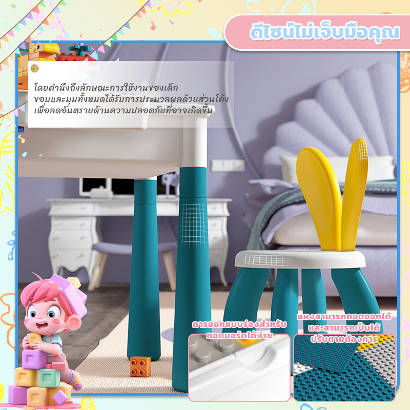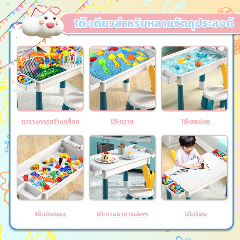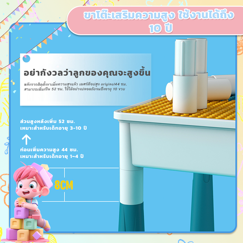 ... การใช้งานมัลติฟังก์ชั่น - การสร้างบล็อก, การเล่นทราย, การศึกษา, การรับประทานอาหาร, การเล่น, การวาดภาพและอื่น ๆ * การออกแบบมิติที่ใกล้ชิดเพื่อส่งเสริมท่าทางการนั่งที่ดีขึ้น * * การออกแบบมิติที่ใกล้ชิดเพื่อส่งเสริมท่าทางการนั่งที่ดีขึ้น โต๊ะทำงาน 2 พื้นผิว * * 2 โต๊ะ 1 โต๊ะใช้โต๊ะเขียนหนังสือในขณะที่อีกด้านหนึ่งเป็นฐานที่สร้างบล็อกพื้นผิวที่เข้ากันได้ เพียงแค่พลิกด้านบนโต๊ะเพื่อเปลี่ยนระหว่างโต๊ะเรียนและโต๊ะเกมได้อย่างง่ายดาย) * พื้นผิวเก็บของขนาดใหญ่เพื่อเก็บบล็อกและเครื่องเขียน * พื้นผิวเก็บของขนาดใหญ่เพื่อให้บล็อกและเครื่องเขียน * * ดีไซน์ทันสมัย