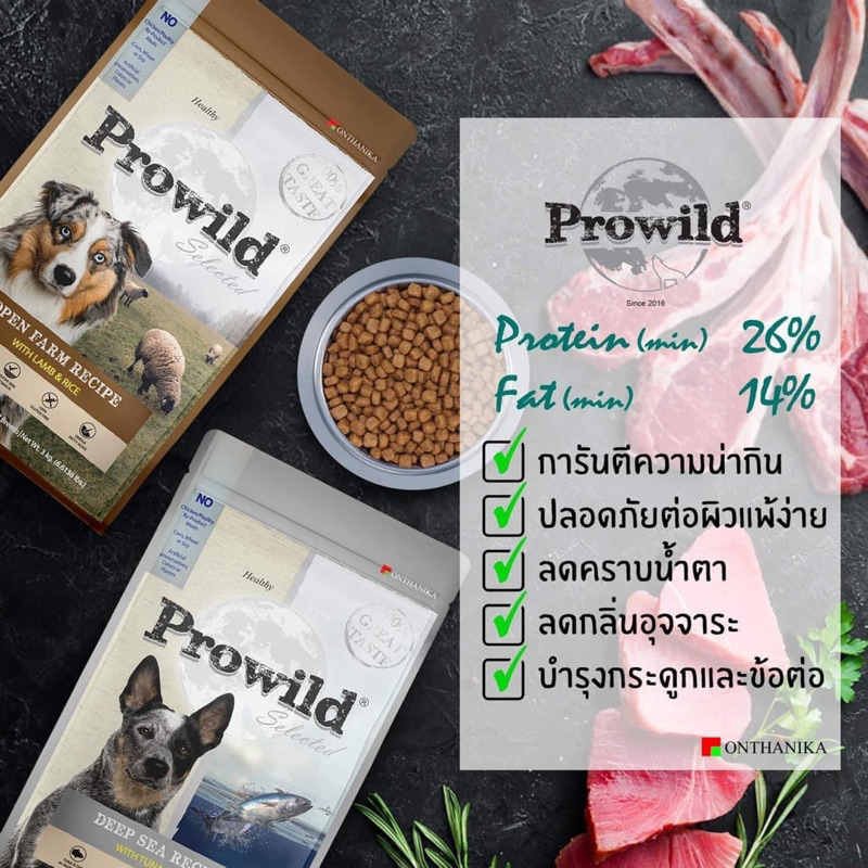 Prowild อาหารสุนัข 3 กิโล 🐑🐟🌾 ✅เหมาะสำหรับสุนัขทุกสายพันธุ์ มี 2 รสชาติ ทานได้ทุกช่วงวัย 📌ขนาดบรรจุ ➖ ถุง 3 กิโล 🐑🌾โปรไวลด์ โอเพ่น ฟาร์ม สูตรเนื้อแกะ สำหรับสุนัขทุกสายพันธุ์/ทุกช่วงวัย ✅คุณสมบัติ •เนื้อแกะเป็นส่วนผสมอันดับแรก ✔️เนื้อแกะเป็นโปรตีนที่ย่อยง่ายและมีรสชาติที่สุนัขชื่นช