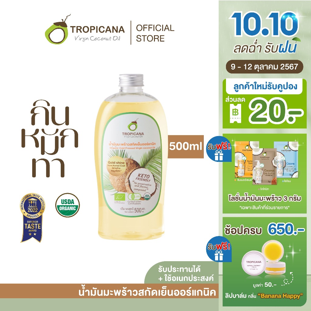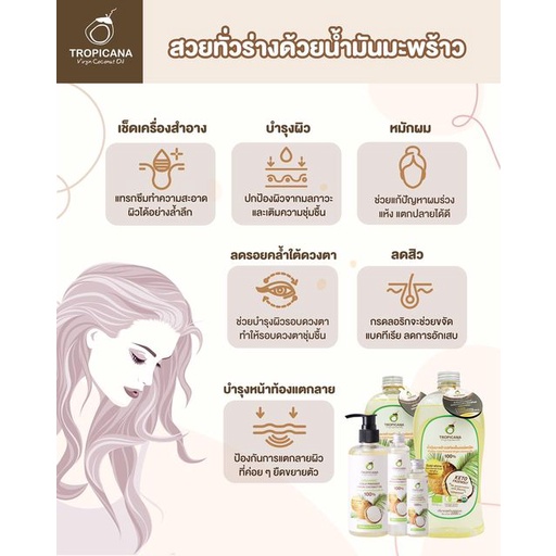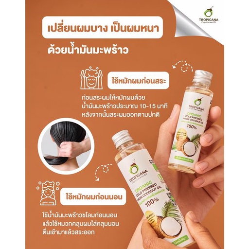 Tropicana | ทรอปิคานา น้ำมันมะพร้าวสกัดเย็นออร์แกนิก ใช้ได้ทั้ง "กิน หมัก ทา" มี อย. 500 ML