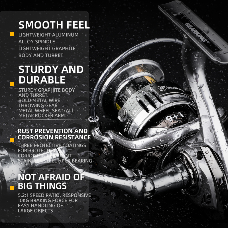 ลักษณะการทำงาน: ■ การออกแบบกันน้ำ 6 แบบป้องกันไม่ให้น้ำและฝุ่นเข้าสู่ผลิตภัณฑ์สามารถใช้ในสภาพแวดล้อมที่สดใหม่และเค็มยืดอายุการใช้งานของผลิตภัณฑ์ได้อย่างมีประสิทธิภาพ ■ ตลับลูกปืนปิดผนึกสแตนเลส 9 + 1 พร้อมเครื่องกลึงแผ่นฟันโลหะผสมสังกะสีที่แม่นยำและแท่งฟันทองเหลืองช่วยเพิ่มความเรียบลื่นอย่างมากใน