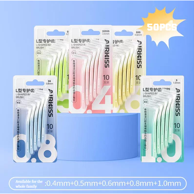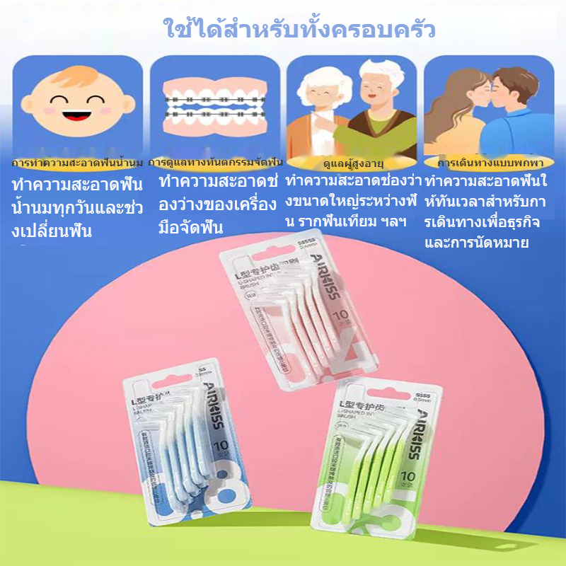 AIRKISS 10ชิ้น 0.4 -1.0 มม นุ่มและทนทาน แปรงซอกฟันสำหรับคนจัดฟัน แปรงขัดซอกฟัน แปรงจัดฟัน แปรงซอกฟัน