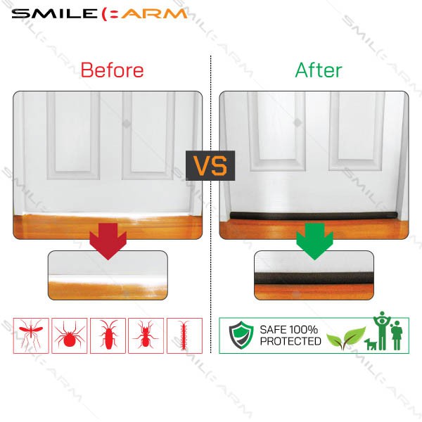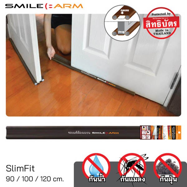SmileArm® ที่กั้นประตู แบบสอด SlimFit คิ้วกันแมลง - ใช้กับประตูบานเปิด-ปิดทั่วไป ช่องใต้ประตูห่างไม่เกิน 1 ซม.