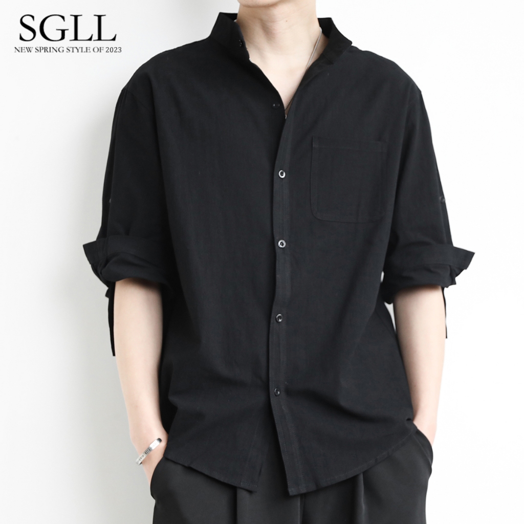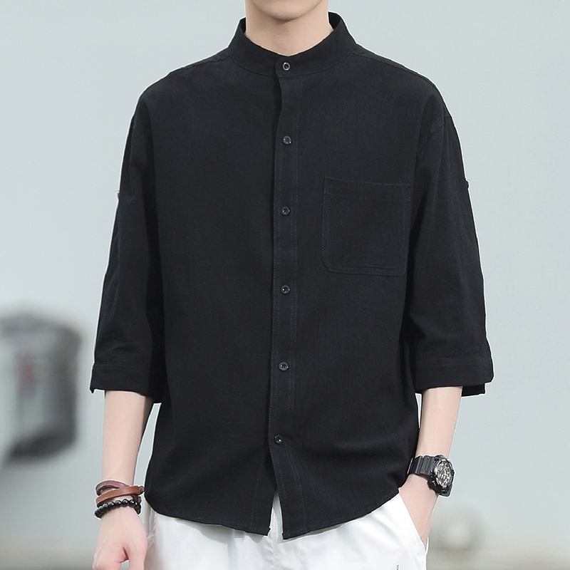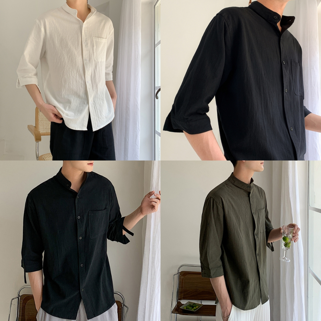 เสื้อเชิ้ตผู้ชายแขนสั้น เสื้อคอจีน ผ้าฝ้าย และผ้าลินิน ใส่สบาย เหมาะกับเดินชายหาด พร้อมส่ง