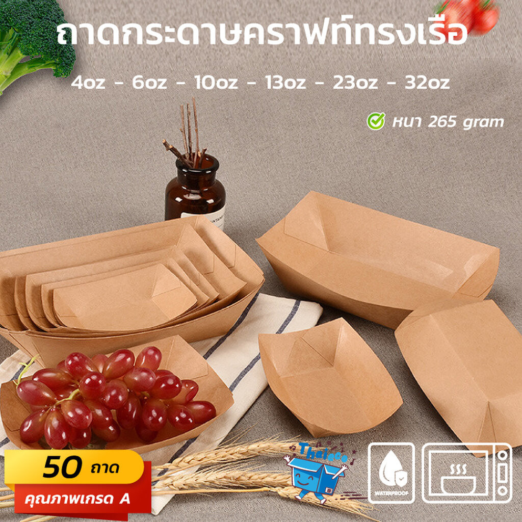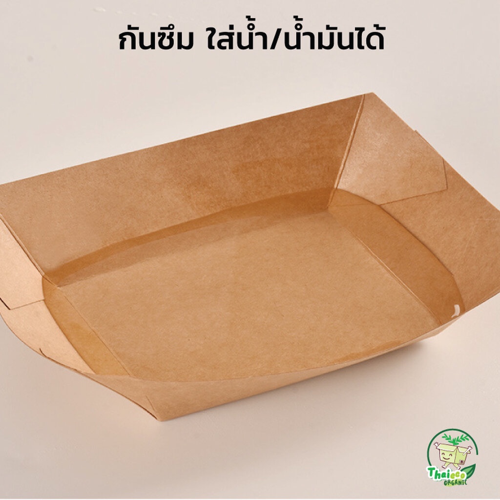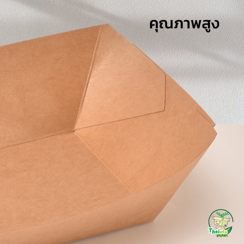 ... องสารเคมีตกค้างอันเป็นภัยต่อสุขภาพ กันน้ำได้ดี รองรับทั้งอาหารเปียกและแห้งได้อย่างมั่นใจในทุกมื้อ โดยไม่ต้องกังวลเรื่องความสะอาดหรือการรั่วซึม เหมาะอย่างยิ่งสำหรับนำไปใช้ในงานกิจกรรม ปิคนิค หรือ ออกงานขายอาหาร เดินรับประทาน ด้วยรูปทรงเรือที่สวยงามและสะดวกต่อการพกพา ปลอดภัย และเป็นมิตรต่อโลก ใช้ได้ทั้งร้อนและเย็น - กระดาษคราฟท์หนา 265 แกรม + เคลือบ PE - สามารถบรรจุของร้อนได้ - กระดาษคราฟท์สีน้ำตาล Foodgrade - กระดาษนำเข้าจากต่างประเทศ คุณภาพดี ทนทานและป้องกันรั่วซึมได้ เคลือบ PE กันซึมในตัวกระดาษแล้ว - ใส่น้ำซุปได้ ไม่รั่วซึม - ระบบเชื่อมด้วยความร้อน ไม่ไช้กาว สัมผัสอาหารได้โดยตรงปลอดภัย ย่อยสลายได้ - เข้าไมโครเวปได้ - ปลอดภัยต่อผู้บริโภค - ถาดกระดาษไม่มีฝาพลาสติก - จำนวน 50 ชุด/แพ็ค (ถาดกระดาษไม่มีฝา) - มีราคาส่ง (สอบถามได้ค่ะ) เบอร์ 1 (4 ออนซ์) = 26*19*28.5 cm เบอร์ 2 (6 ออนซ์) = 30*21*30.5 cm เบอร์ 3 (10 ออนซ์) = 34*25*31 cm เบอร์ 4 (13 ออนซ์) = 26*17.5*35 cm เบอร์ 5 (23 ออนซ์) = 32*22.5*35 cm เบอร์ 6 (32 ออนซ์) = 35*25.5*40 cm