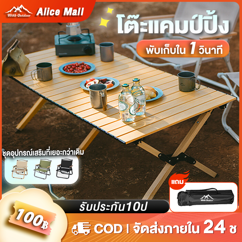 WTHB🔥โต๊ะแคมป์ปิ้ง โต๊ะไม้แคมป์ปิ้ง โต๊ะสนาม พับได้ อุปกรณ์แคมป์ปิ้ง 120/150/90CM เลือกได้หลายสี