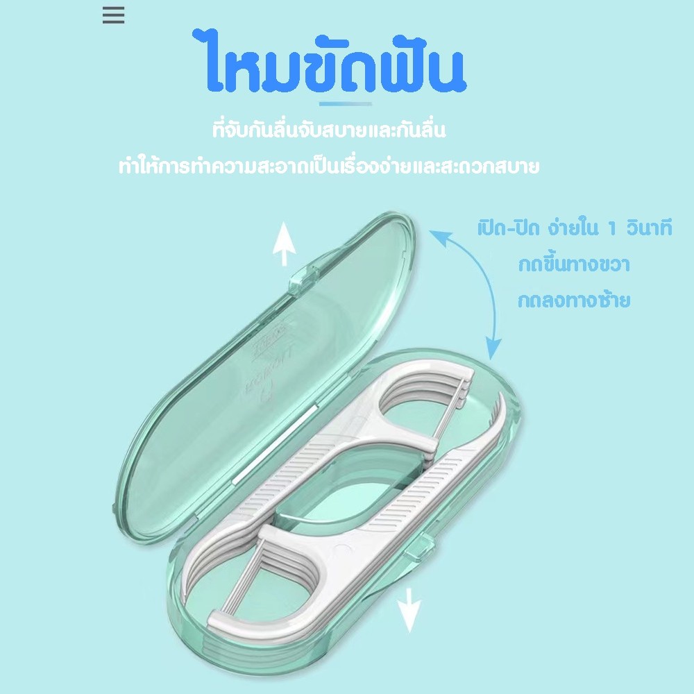 ... ยหายจากลูกค้าเอง เช่น ตกหล่น งัดแงะ กระแทกหรืออื่นๆที่ไม่ได้เกิดจากตัวสินค้า 👉 กรณีส่งเคลมสินค้าอาจมีค่าดำเนินการจัดส่งเป็นไปตามดุลพินิจของทางร้าน 🌈🌈 รายละเอียดสินค้า 🌈🌈 #ไหมขัดฟันแบบมีด้านจับ แบบโค้งไม่จิ้มฟัน** #แบบพกพา 10 ชิ้น ****ใช้แบบซองเติมได้*** -ขนาดเล็กกระทัดรัด พกพาง่าย - อุปกรณ์ที่รวมเอาไหมขัดฟันและไม้จิ้มฟันเข้าด้วยกัน - ตัวไหมมีความเหนียวแข็งแรง ไม่ขาดง่าย - ตัวด้ามออกแบบให้จับถนัด ไม่ลื่นขณะใช้งาน - แนะนำสำหรับผู้เริ่มใช้ไหมขัดฟัน เพราะไม่จำเป็นต้องพันไหมด้วยตนเอง - ตัวไม้จิ้มฟันนั้น มีประสิทธิภาพดีกว่าไม้จิ้มฟันที่เป็นไม้ เนื่องจากเป็นพลาสติก จึงทำให้โค้งงอไปขจัดเศษอาหารได้ง่ายกว่า - ภายในบรรจุจำนวน 10ชิ้น เหมาะสำหรับผู้ที่ใช้เป็นประจำทุกวัน