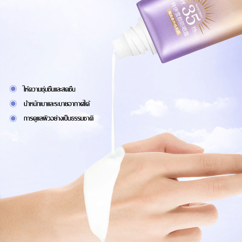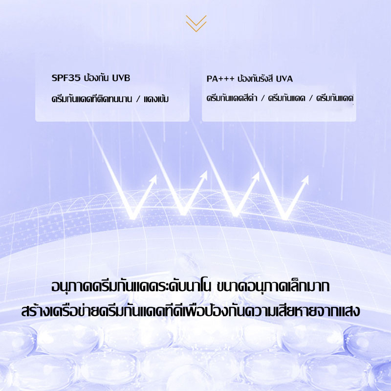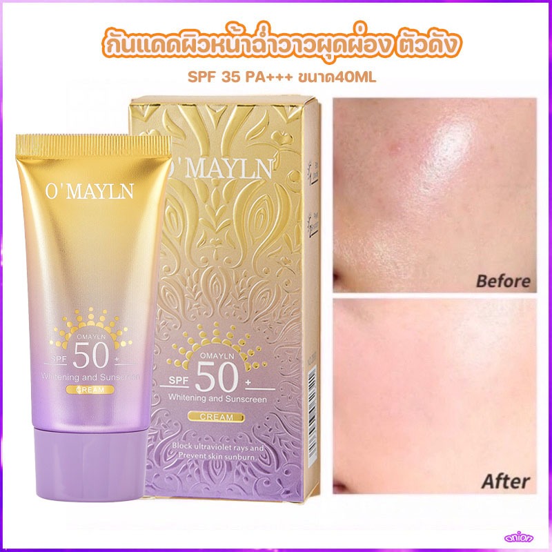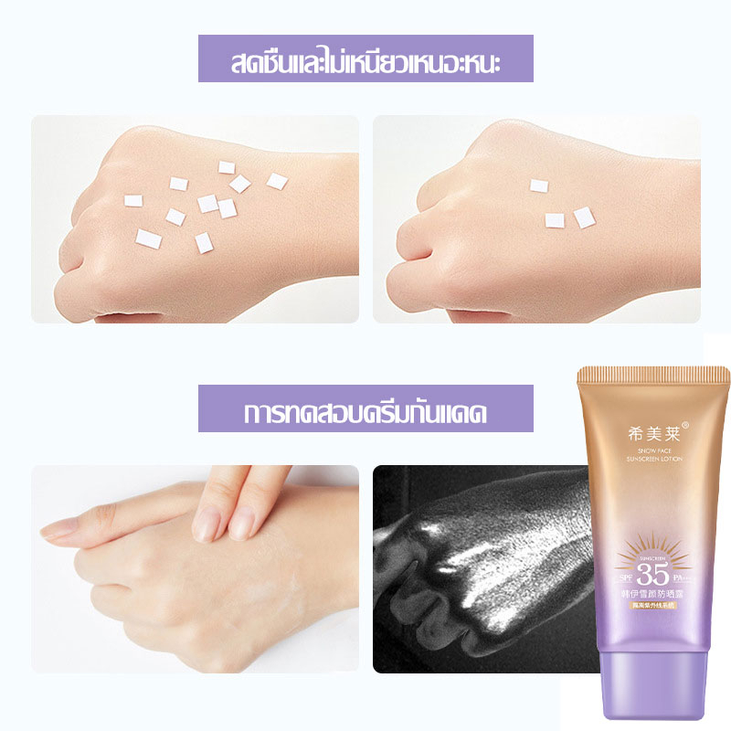 กันแดดผิวหน้าฉ่ำวาวผุดผ่อง ตัวดัง หลอดม่วง SPF 35 PA+++ ขนาด40ML เนื้อบางเบามากๆ เนื้อไม่หนักหน้า ซึมไวไม่เหนียวเหนอะหนะ ผิวผสม ผิวมันเหมาะมากค่า เพราะรุ่นนี้ควบคุมความมัน และไม่ก่อให้เกิดการอุดตัน ฉะนั้นผิวเป็นสิวสามารถใช้ได้ ไม่ผสมรองพื้นเนื้อครีมสีขาวปรับผิวกระจ่างสว่างใสขึ้นเป็นธรรมชาติ 1 ระด