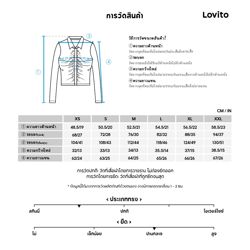 ... กอบด้วย 1Xเสื้อยืด ✅บทนำโลวิโต้ Lovito เป็นแบรนด์เกิดใหม่ที่เชื่อมั่นในพลังของเด็กผู้หญิง โดยมุ่งมั่นที่จะนำเสนอทางเลือกเสื้อผ้าที่ทันสมัยและราคาไม่แพงสำหรับสไตล์ ความต้องการ และอัตลักษณ์ที่แตกต่างกัน เราเชื่อว่าแฟชั่นควรจะสนุกสนาน ปลดปล่อย และทำให้คุณรู้สึกดี ท้ายที่สุดแล้ว เครื่องประดับที่ดีที่สุดสำหรับทุกลุคคือความมั่นใจในตนเอง ✅หมายเหตุการซื้อ โปรดดูความสูงและแผนภูมิขนาดก่อนซื้อ มีความแตกต่าง 2-3% ตามการวัดด้วยตนเอง รูปภาพสินค้าทั้งหมดในร้านนี้เป็นภาพถ่ายจริง 100% เนื่องจากแสงและหน้าจอที่แตกต่างกัน ความแตกต่างของสีเล็กน้อยและข้อผิดพลาดที่แท้จริงจึงถือเป็นเรื่องปกติ ติดตามร้านค้าของเราและค้นพบสินค้าใหม่และข้อเสนอที่ดีที่สุดสำหรับคุณ!! ⭐️พัสดุจะถูกจัดส่งภายใน 48 ชั่วโมง ⭐️มีบริการจัดส่งฟรี ⭐️สินค้าทั้งหมดมีในสต็อกและเป็นสินค้าใหม่เอี่ยม หากคุณมีคำถามใด ๆ พูดคุยกับเราแล้วเราจะตอบกลับโดยเร็วที่สุด😊